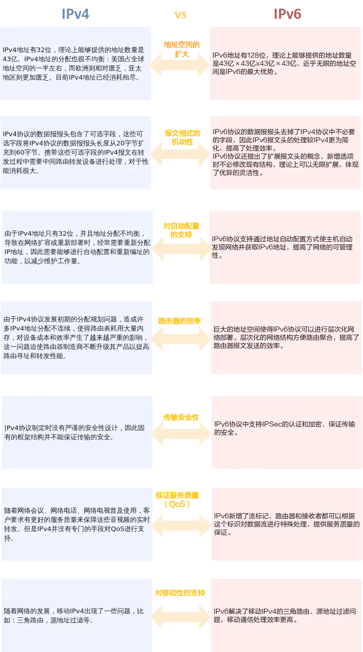 IPv6地址长度为128位,表示为”X:X:X:X:X:X:X:X”, 每个X代表4个十六进制值字符,以冒号分隔,一共被分为8组。为了书写方便,例如,IPv6地址:FC00:0000:130F:0000:0000:09C0:876A:130B,还可以写为缩略形式:每组中的前导“0”都可以省略,可写为:FC00:0:130F:0:0:9C0:876A:130B。如果地址中包含连续两个或多个均为0的组,可以用双冒号“::”来代替,进一步简写为:FC00:0:130F::9C0:876A:130B。但是,由于无法在短时间内将网络中的全部系统从IPv4升级到IPv6。最有效的过渡方案便是IPv6地址支持内嵌IPv4地址。原先的IPv4地址由32位二进制数值组成,但为了便于识别和记忆,采用了”点分十进制表示法”。表示为”d. d. d. d”,其中每一个d代表一个十进制整数, 以点分号分隔,一共有4个整数。现在,IPv4地址转变为了一种特殊形式的IPv6地址:”X:X:X:X:X:X:d.d.d.d” , 其中”X:X:X:X:X:X”的前80位设为0,后16位设为1,然后再跟IPv4地址。例如,IPv4地址是192.168.0.1,那么嵌入在IPv6协议中呈现的地址为 ::FFFF:192.168.0.1。