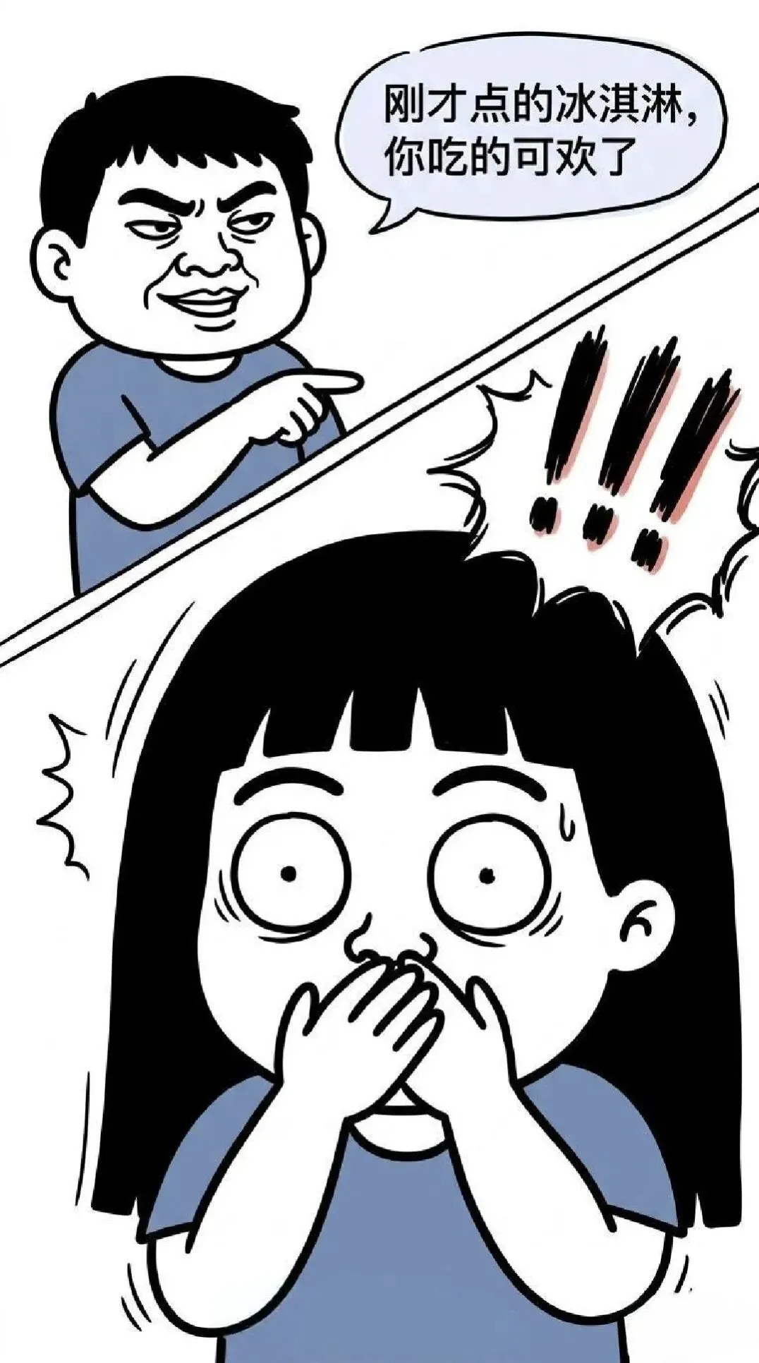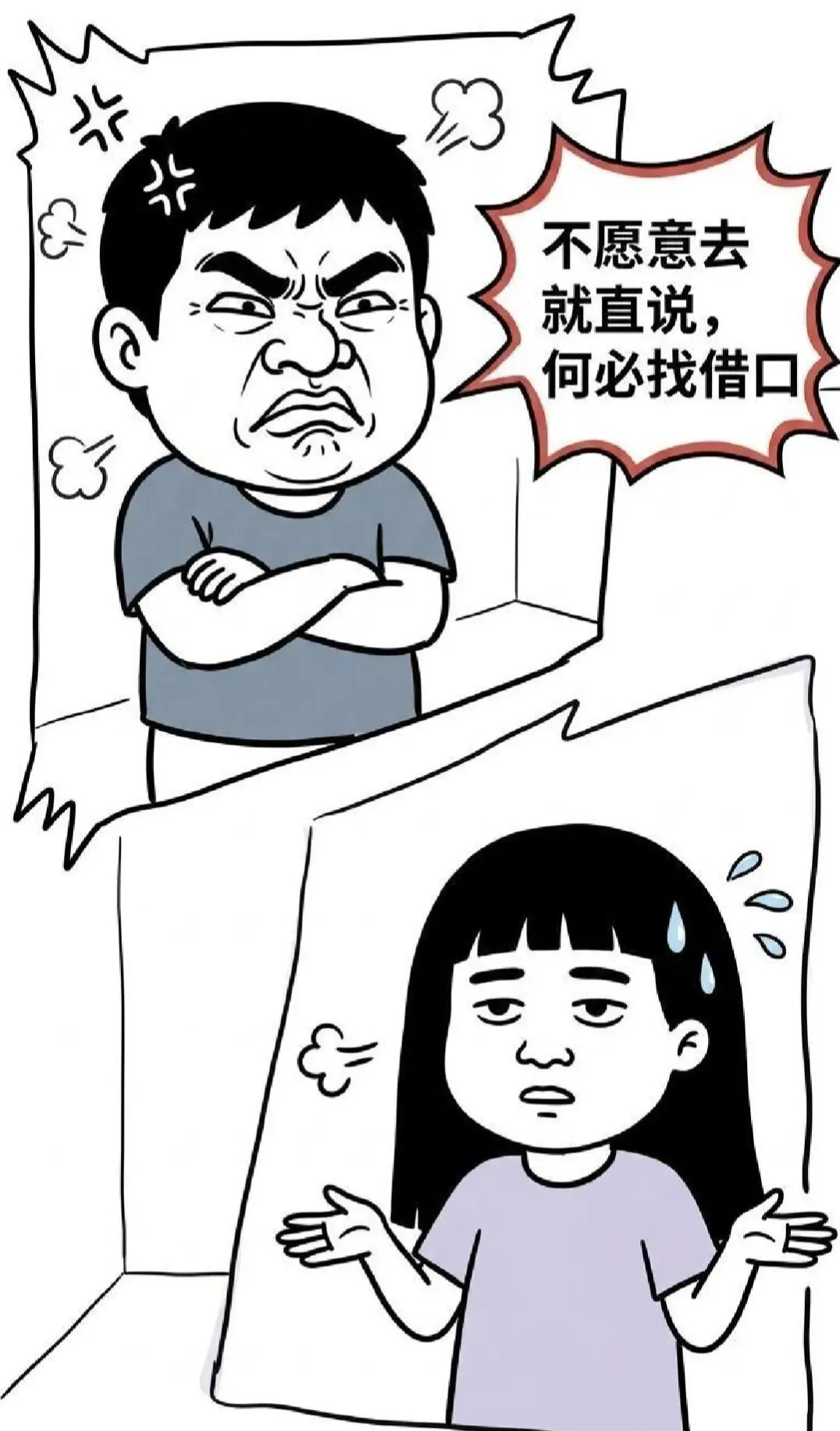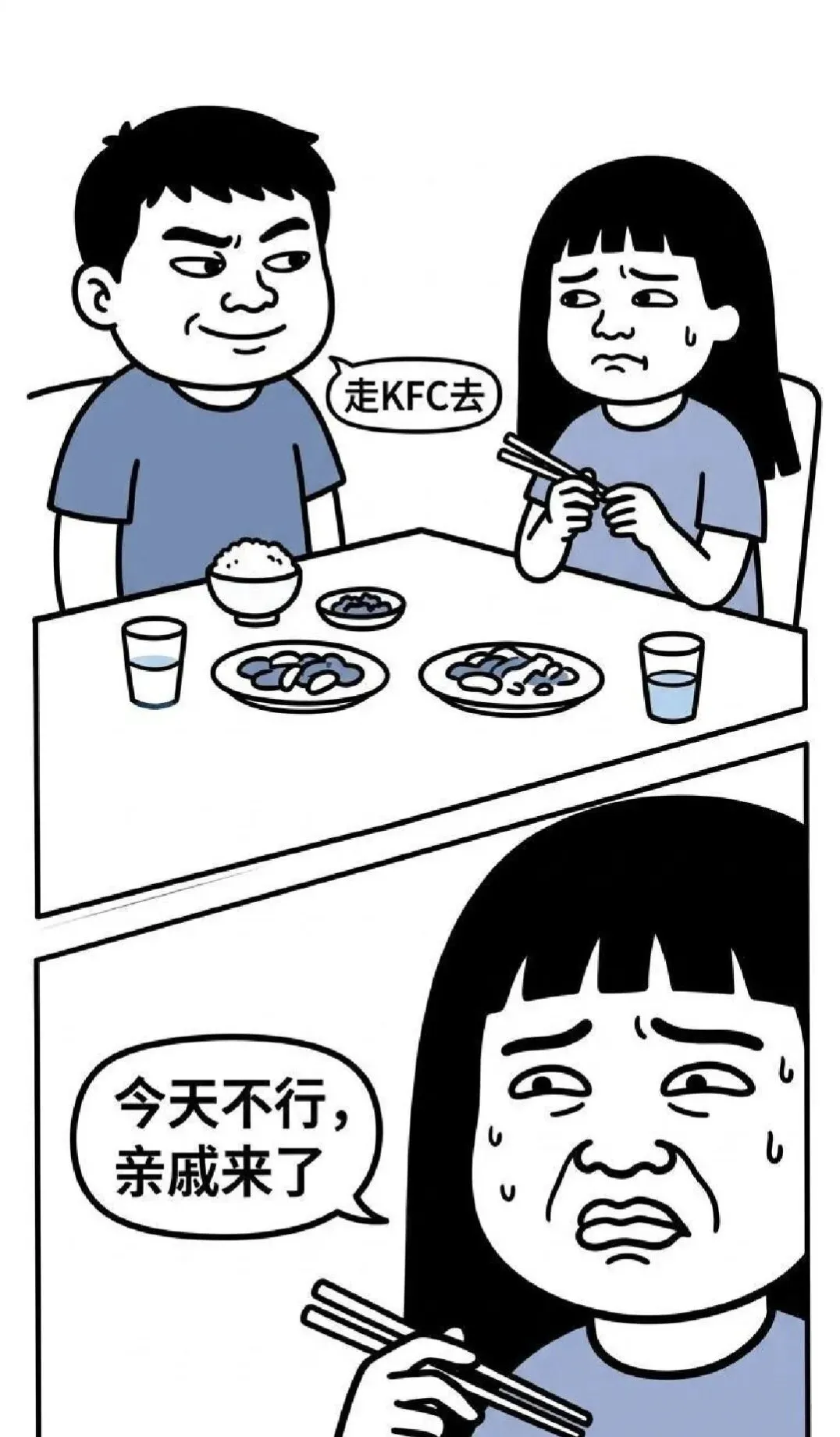 趣味漫画:男:走KFC去,妹纸:今天不行,来亲戚了,男子很是不满:不愿意就直说,何必找借口,妹纸很惊讶:你怎么知道我是找借口…