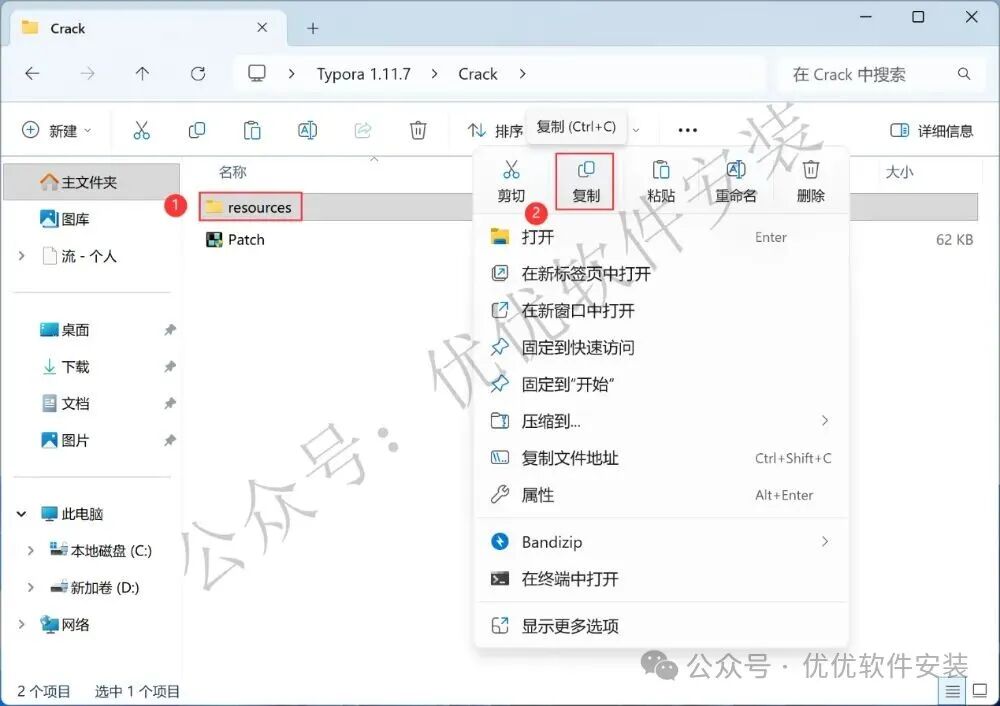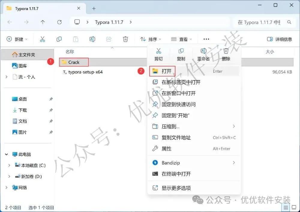 10、回到Typora 1.11.7文件夹,找到【Crack】文件夹,右键【打开】它
