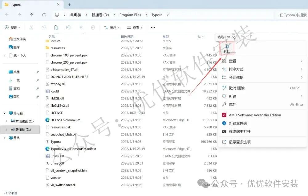 1、下载Typora 1.11.7软件安装包到电脑上,右键选择【解压到Typora 1.11.7\】