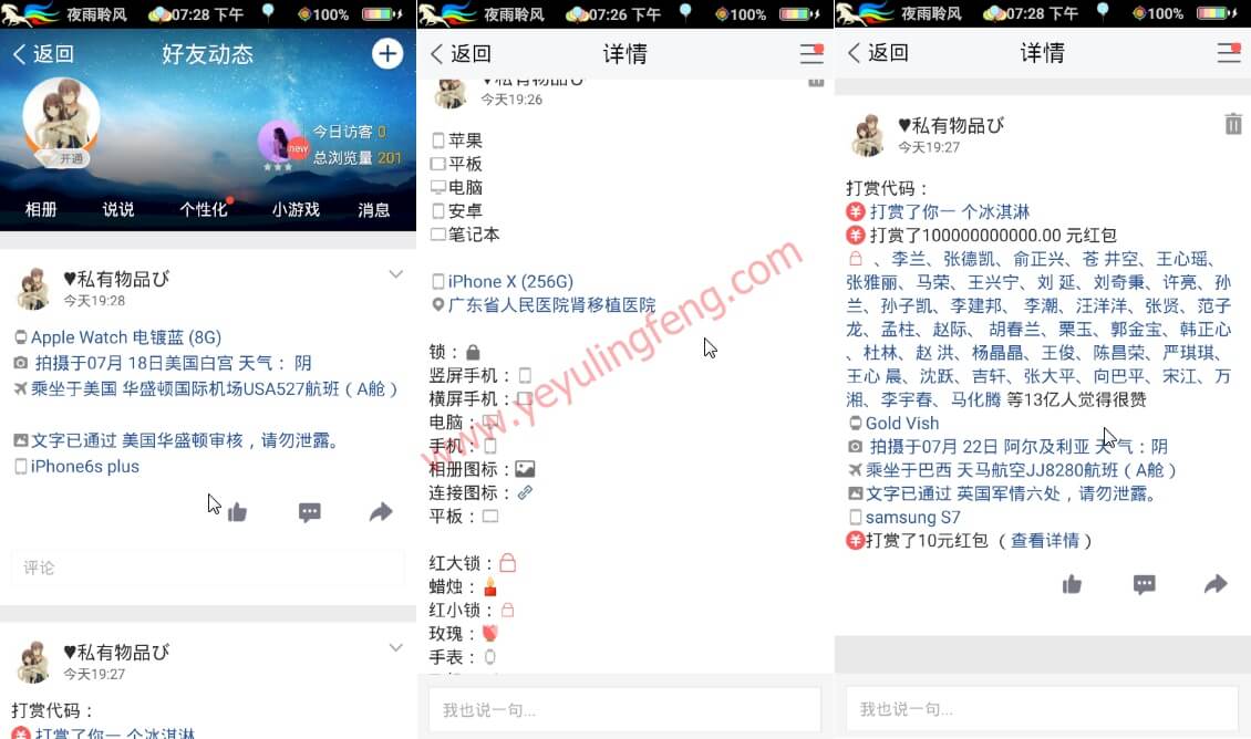 装13也是一门学问,老夜作为一个穷逼也不是一天两天了,消费不起至少玩的要比RMB玩家花。上面的代码看的头疼,小场面莫慌专用工具附上,此软件可以让你任意的修改空间发表后的说说手机标识,装逼首选,纯代码无需ROOT。原理跟上面代码类似就是只能修改手机型号标识,想尝试更多花样或者动手能力极强的建议使用上面的plus版本。