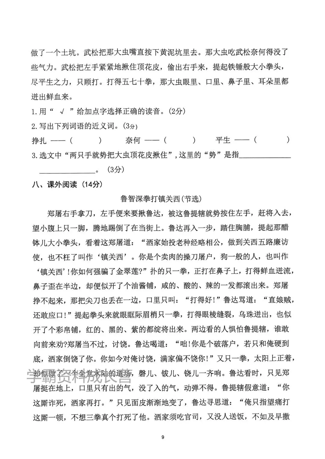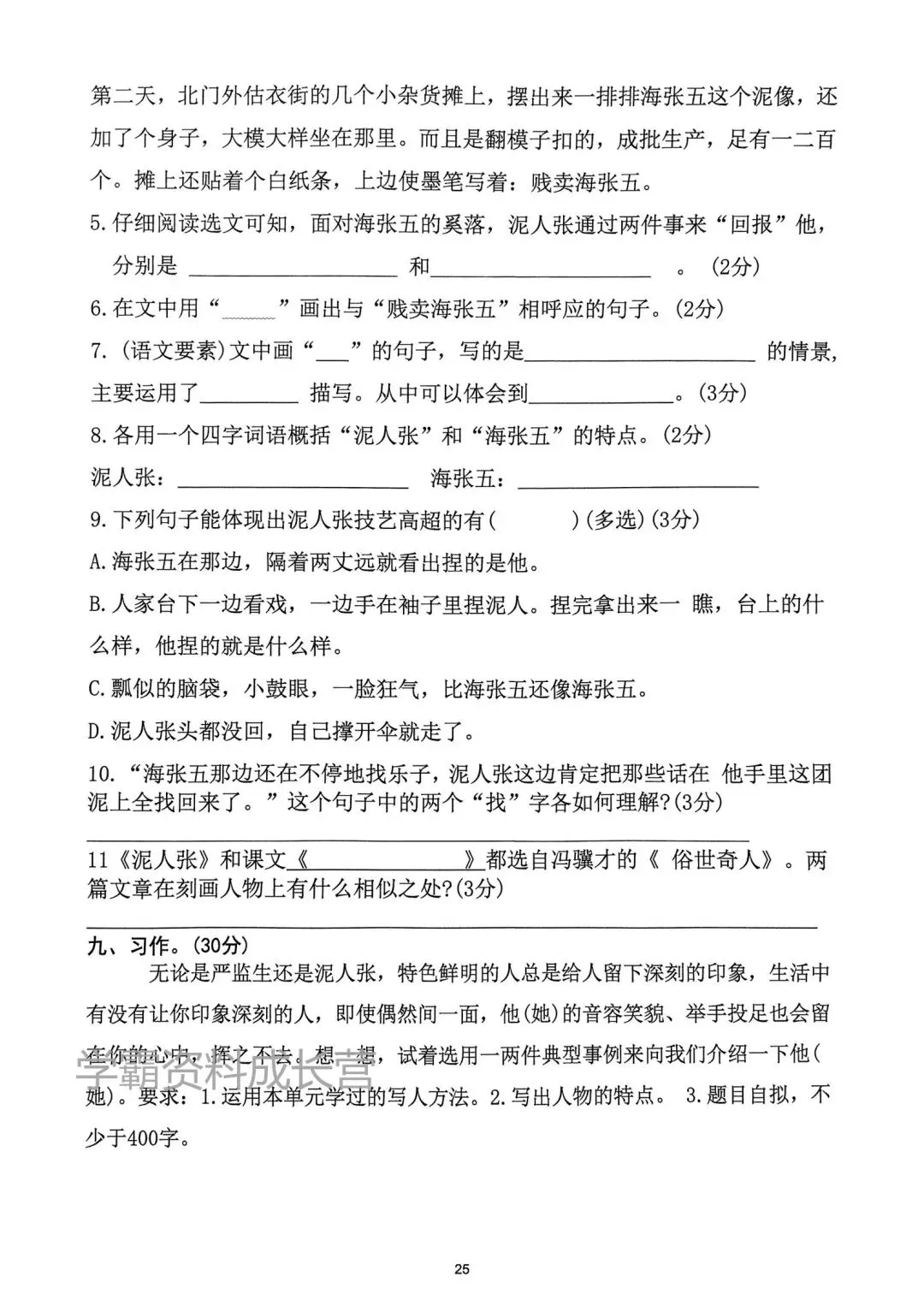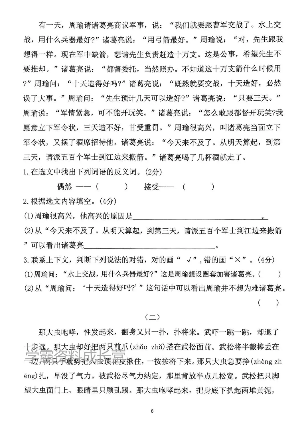26年春五年级下册人教部编版语文 《1-8单元拔尖测试卷》8套附答案,可打印