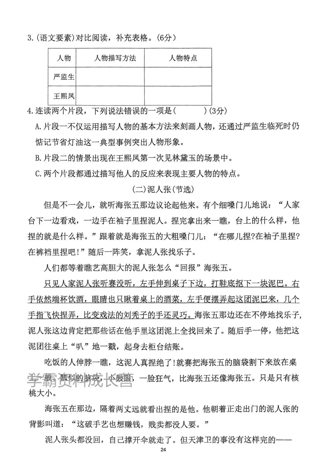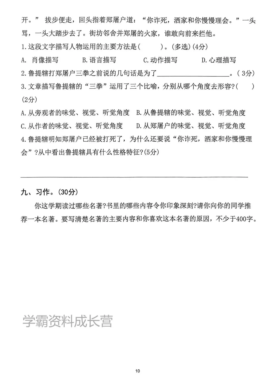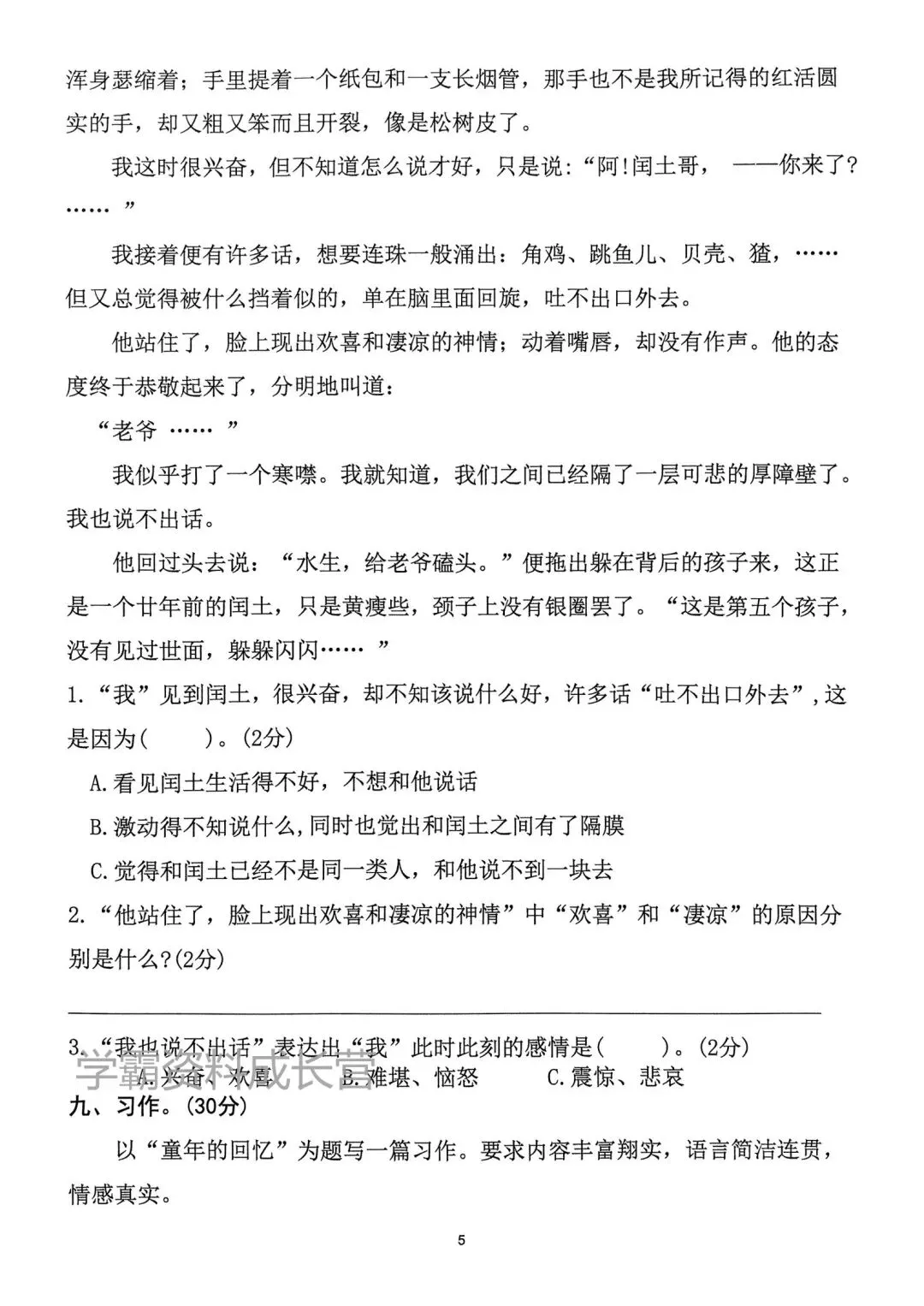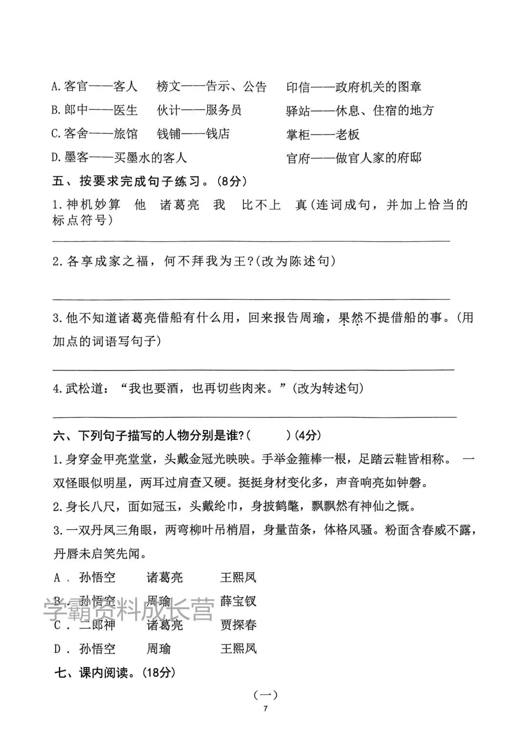 26年春五年级下册人教部编版语文 《1-8单元拔尖测试卷》8套附答案,可打印