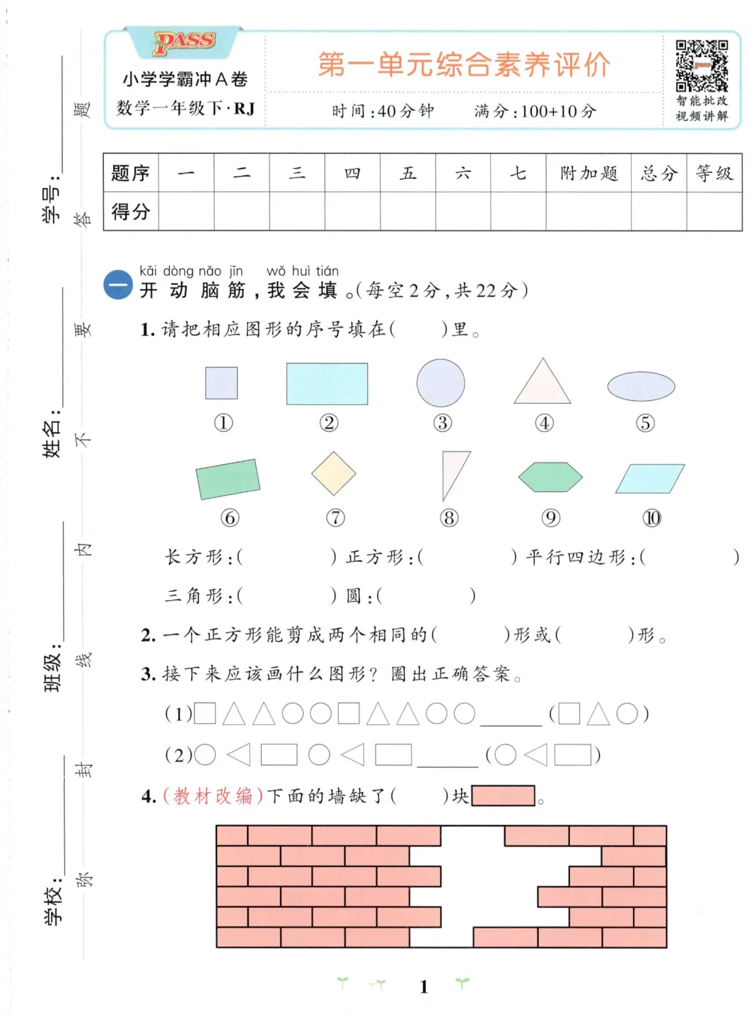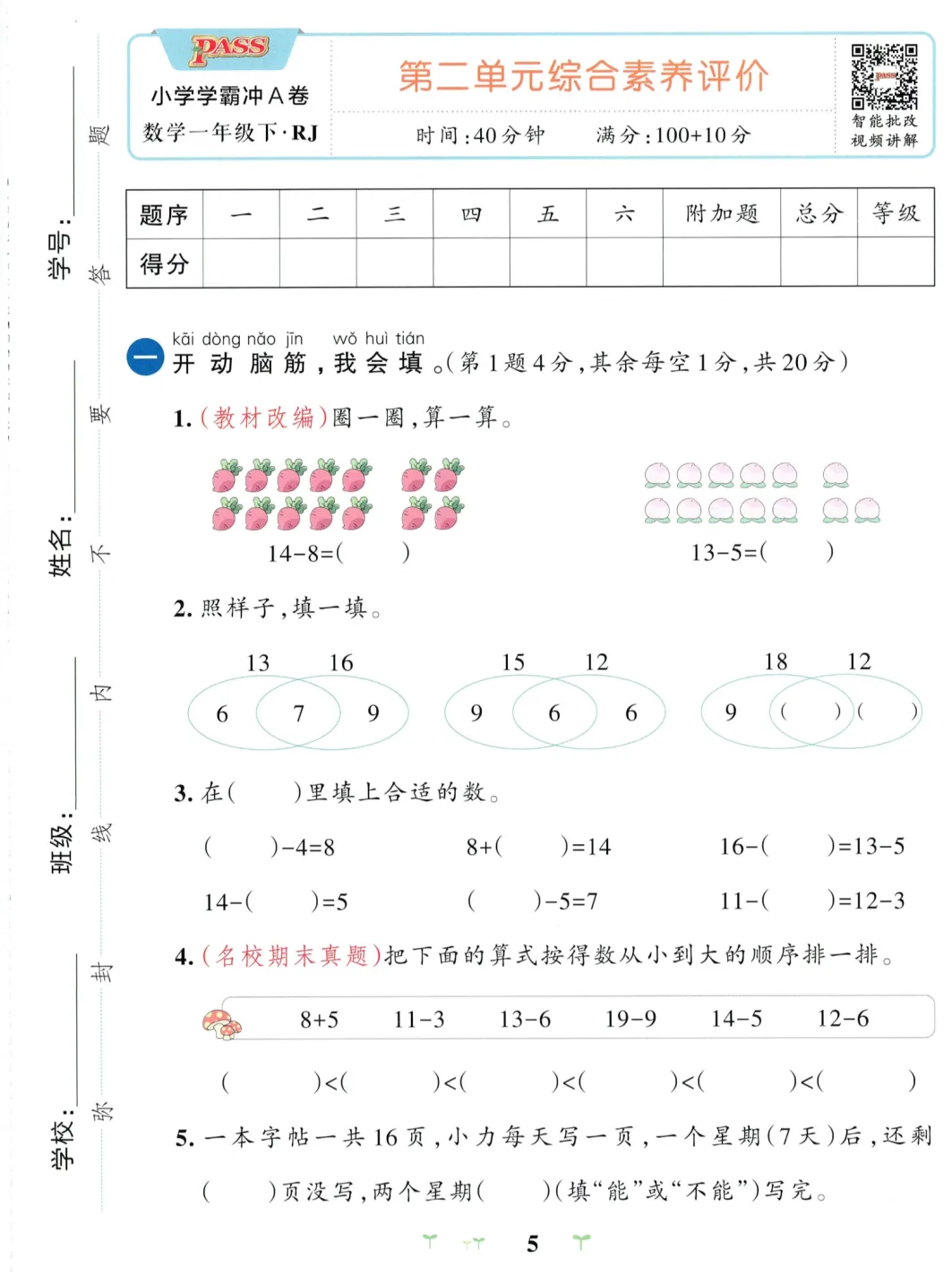 专为一年级下册孩子设计的综合素养评价试卷来啦!