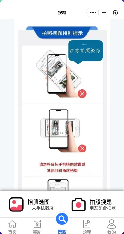 ❌ 禁止横拍、斜拍,保持手机平面正视题目角度;
