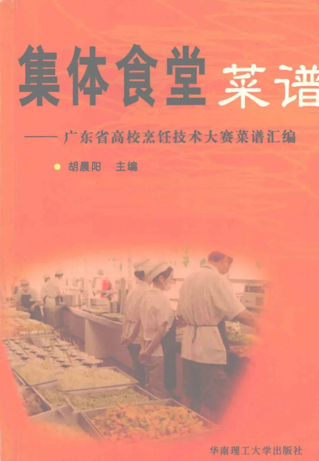 2004年《集体食堂菜谱:广东省高校烹饪技术大赛菜谱汇编》(胡晨阳 著,华南理工大学出版社)收录广东高校烹饪大赛精品菜谱,分大众菜、面点、筵席三类,粤菜风味浓郁,含实操步骤与实拍,适配食堂批量制作与家庭参考 。