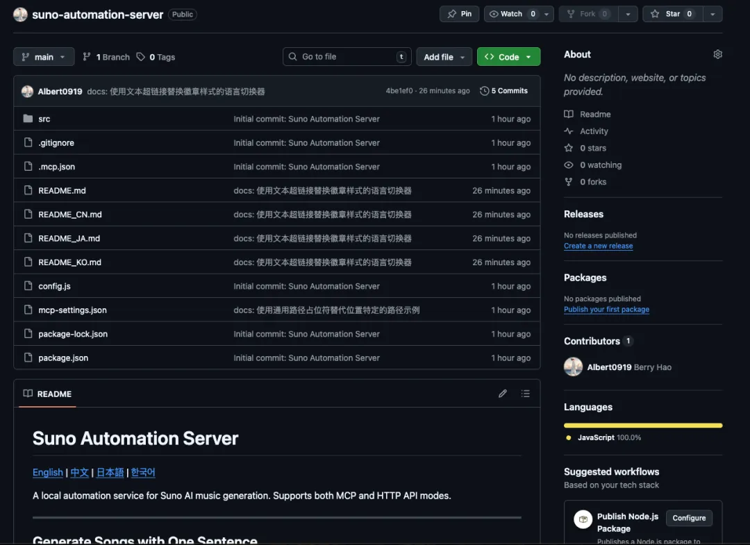 仓库地址:https://github.com/Albert0919/suno-automation-server