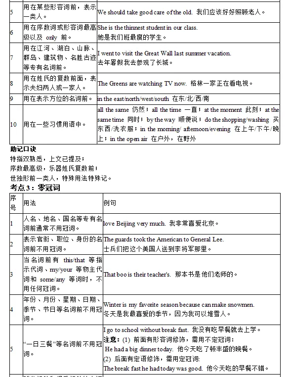 本文最后更新于2026-03-16,某些文章具有时效性,若有错误或已失效,请在下方留言或联系老夜。 中考英语必背词法:冠词(可下载打印) 中考英语必背语法持续分享 今天分享词法:冠词 篇幅有限,仅展示部分内容 关注我,初三英语,我们一起冲高分。 👉 回复关键词:【冠词】,领取完整版