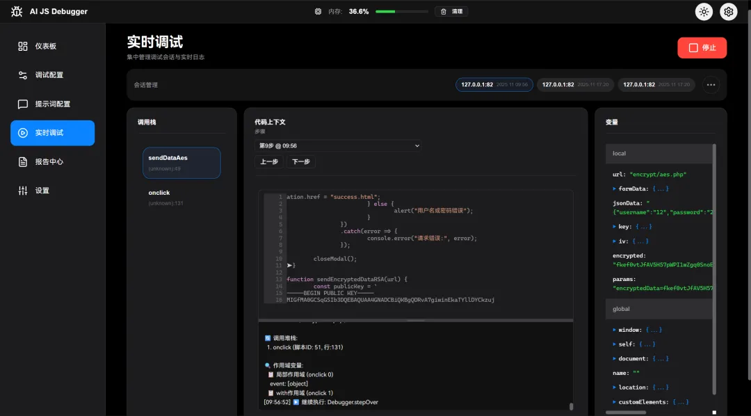 AI_JS_DEBUGGER项目是基于Chrome开发者协议(CDP)的AI自动化JavaScript逆向分析工具,通过AI自动调试前端JS,自动分析加解密算法、密钥等,自动生成分析报告以及mitmproxy脚本。