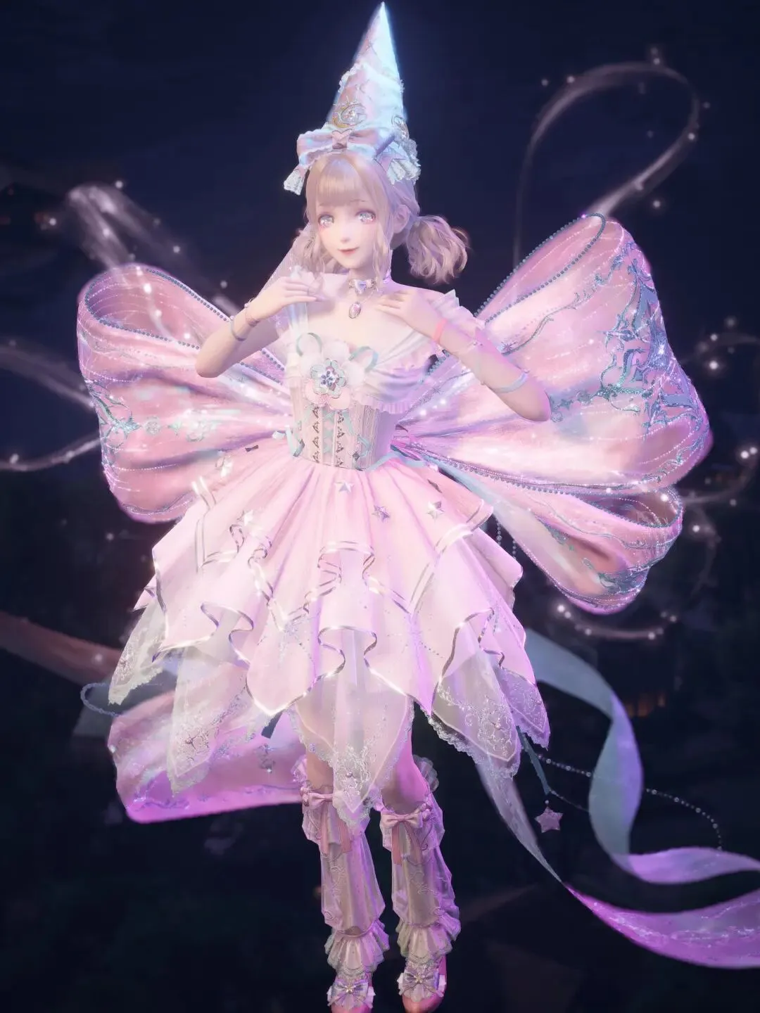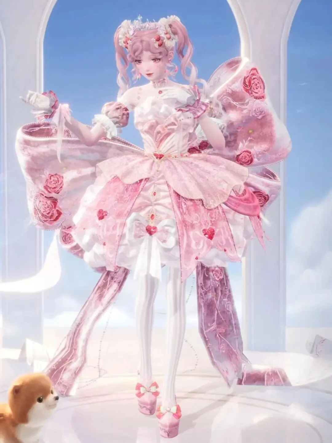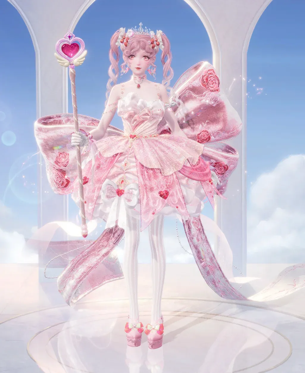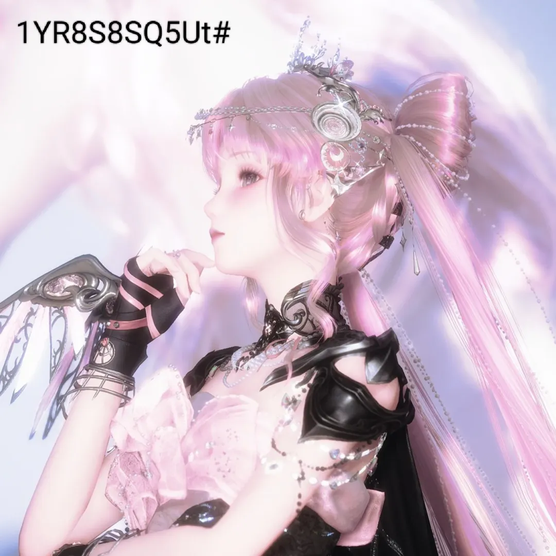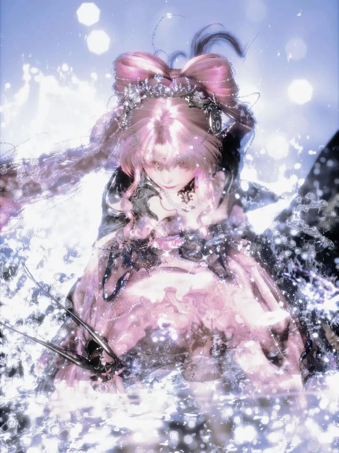 头上蝴蝶结:粉缎带