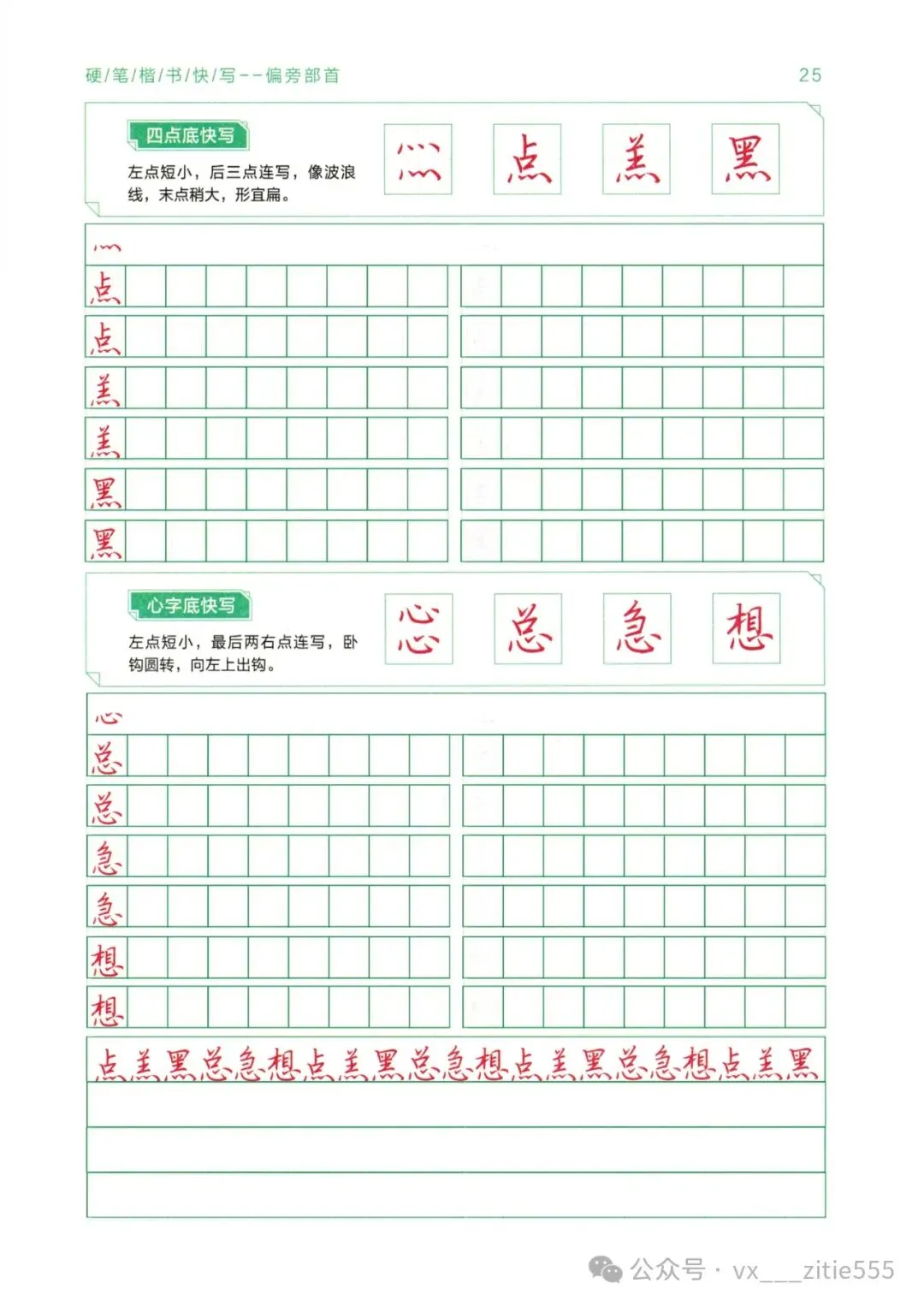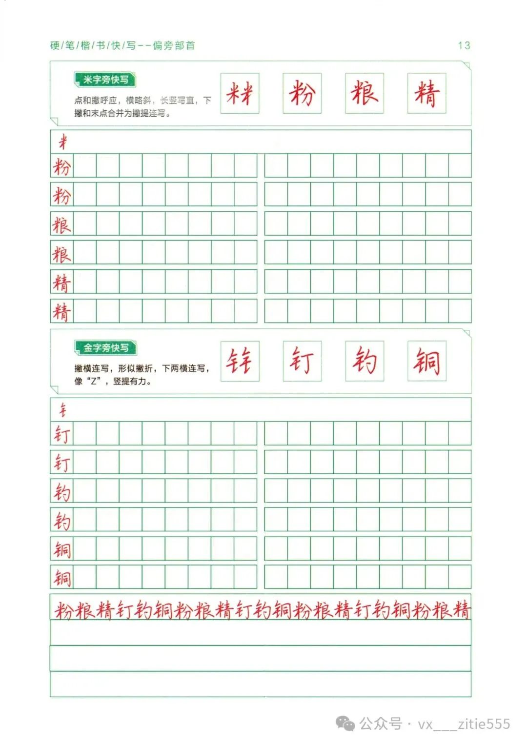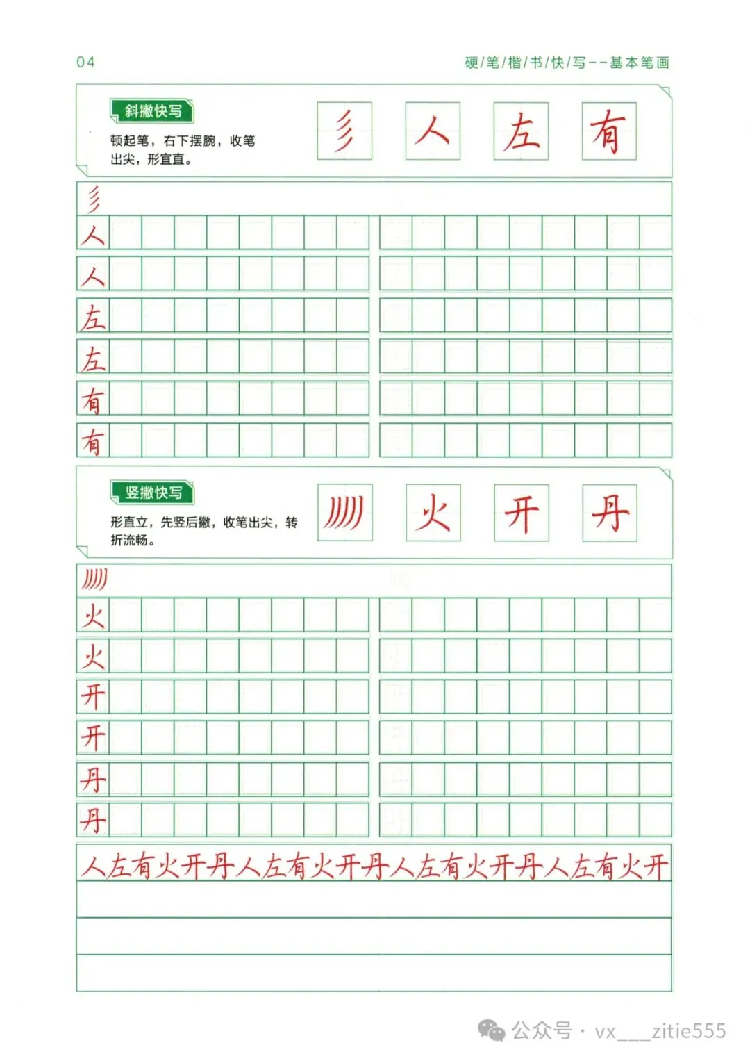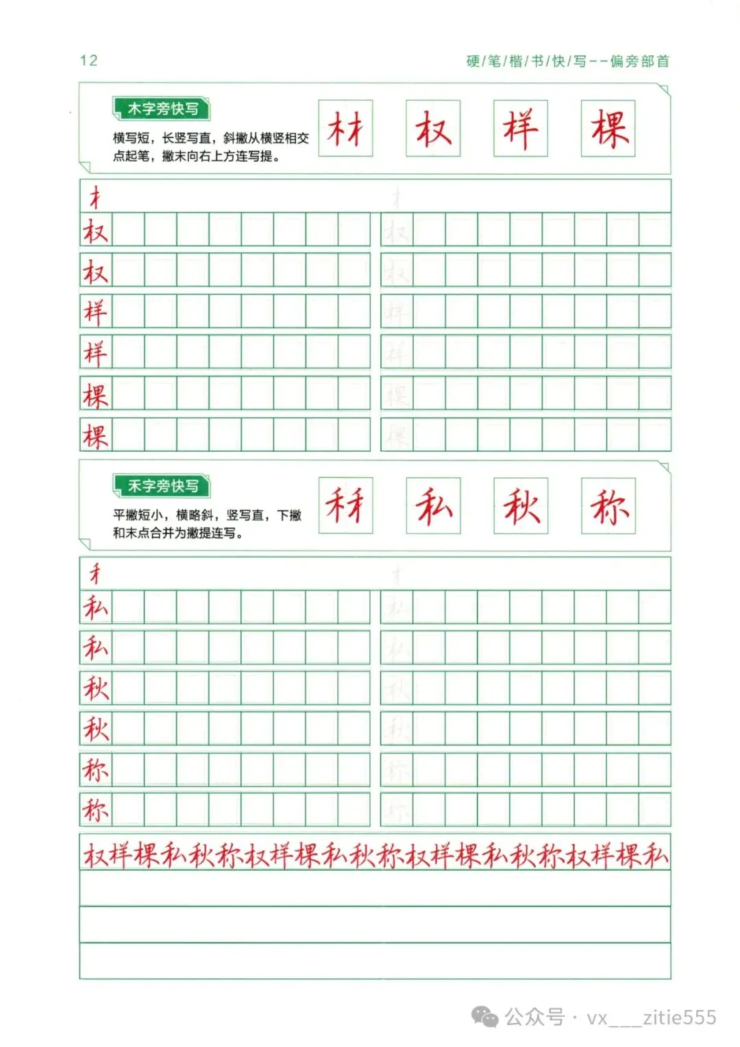 【讲解教程03】电子版《硬笔楷书教程》,基本笔画+偏旁部首上下册+间架结构上下册