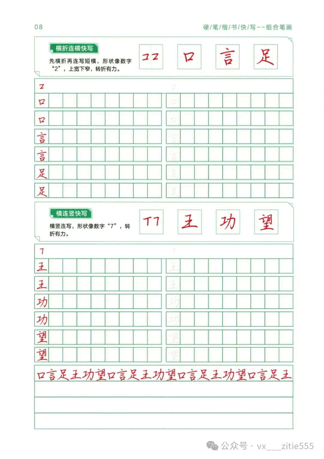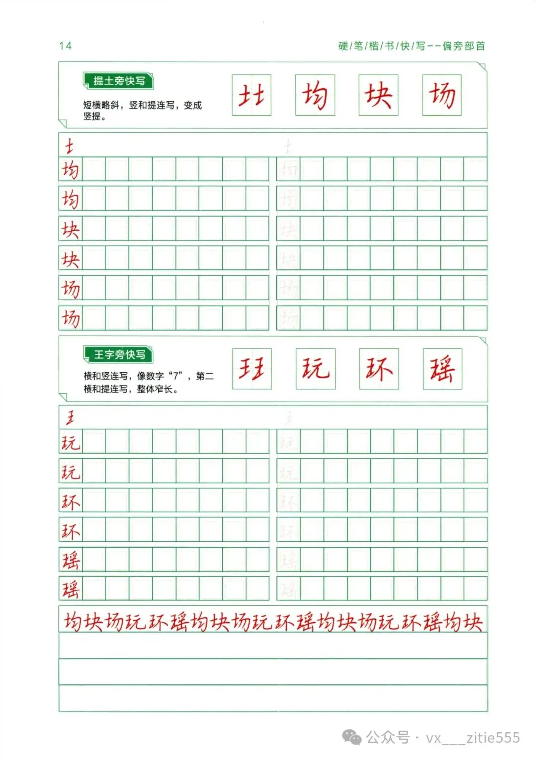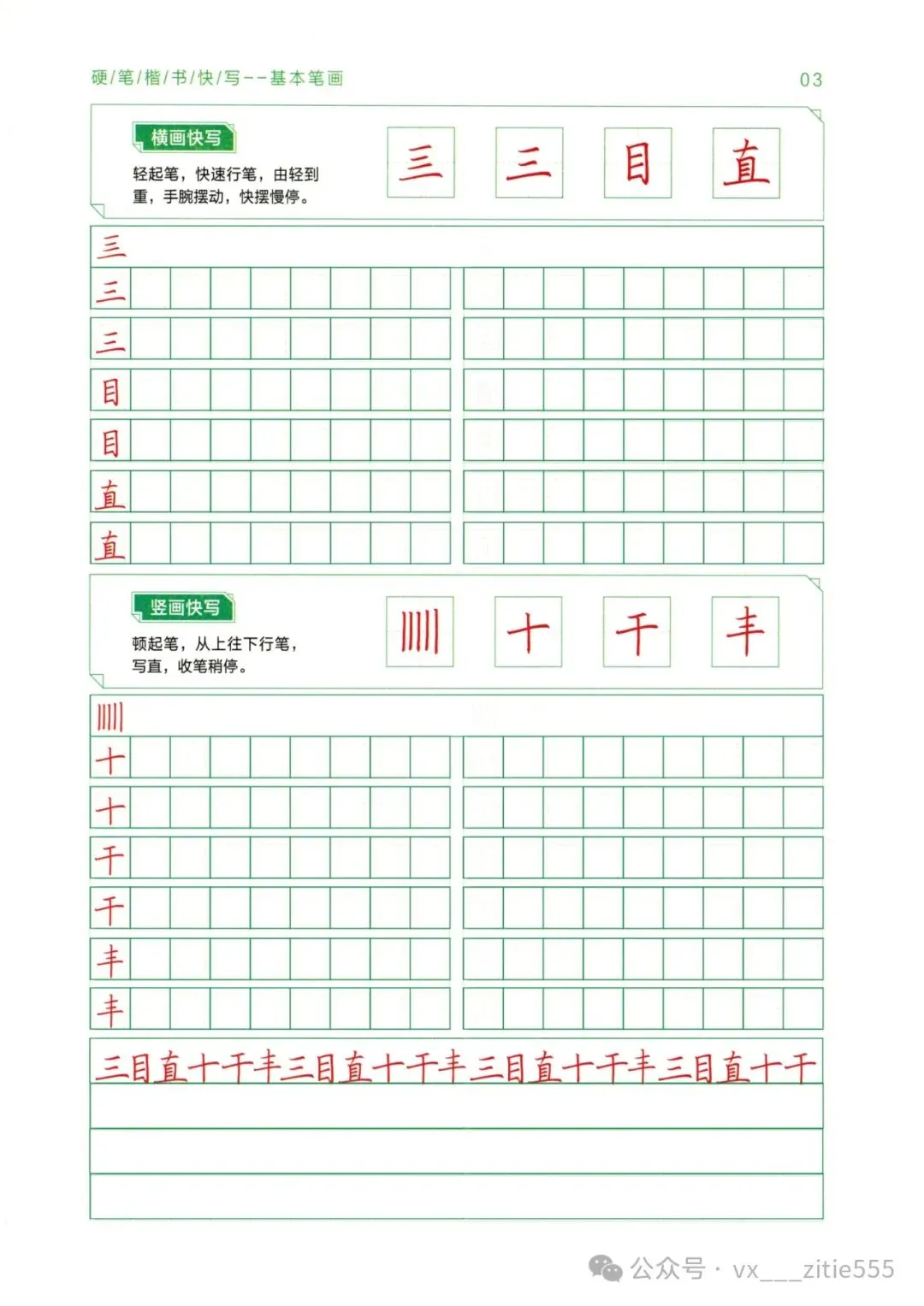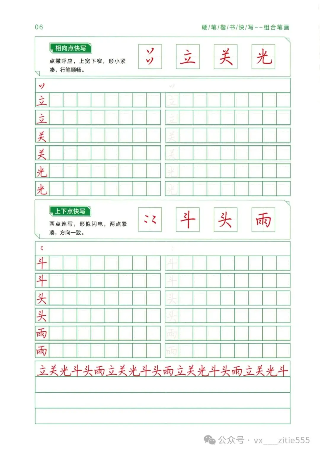 【讲解教程03】电子版《硬笔楷书教程》,基本笔画+偏旁部首上下册+间架结构上下册