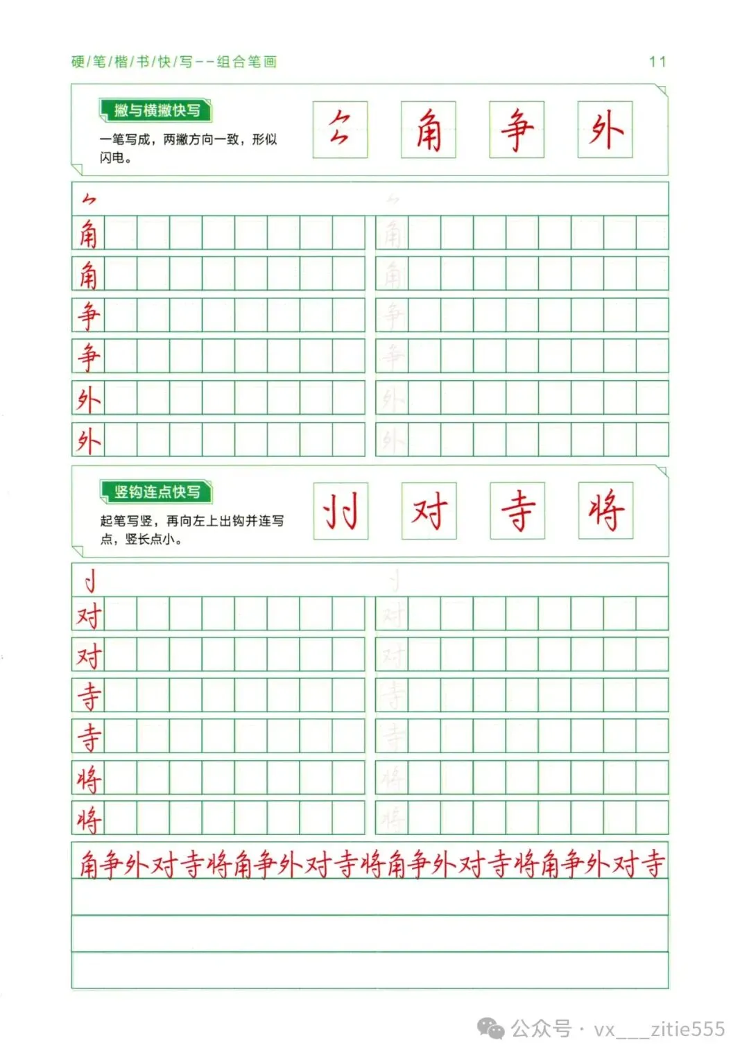 【硬笔教材】《楷书精讲教程》,基本笔画39+偏旁部首83+间架结构50