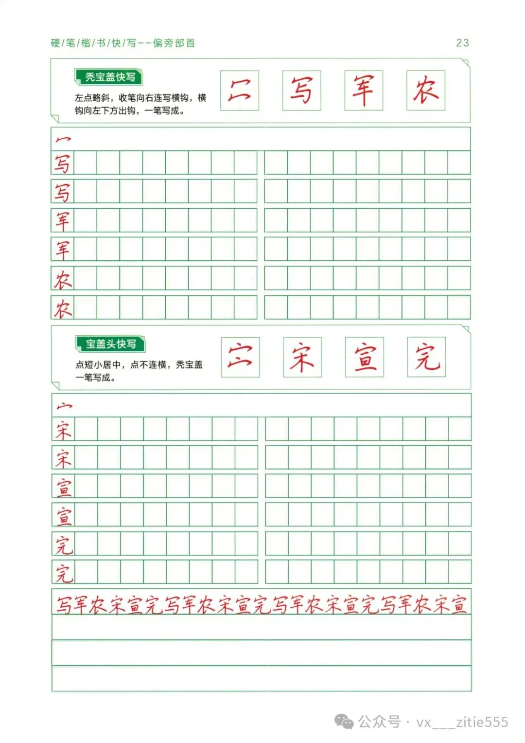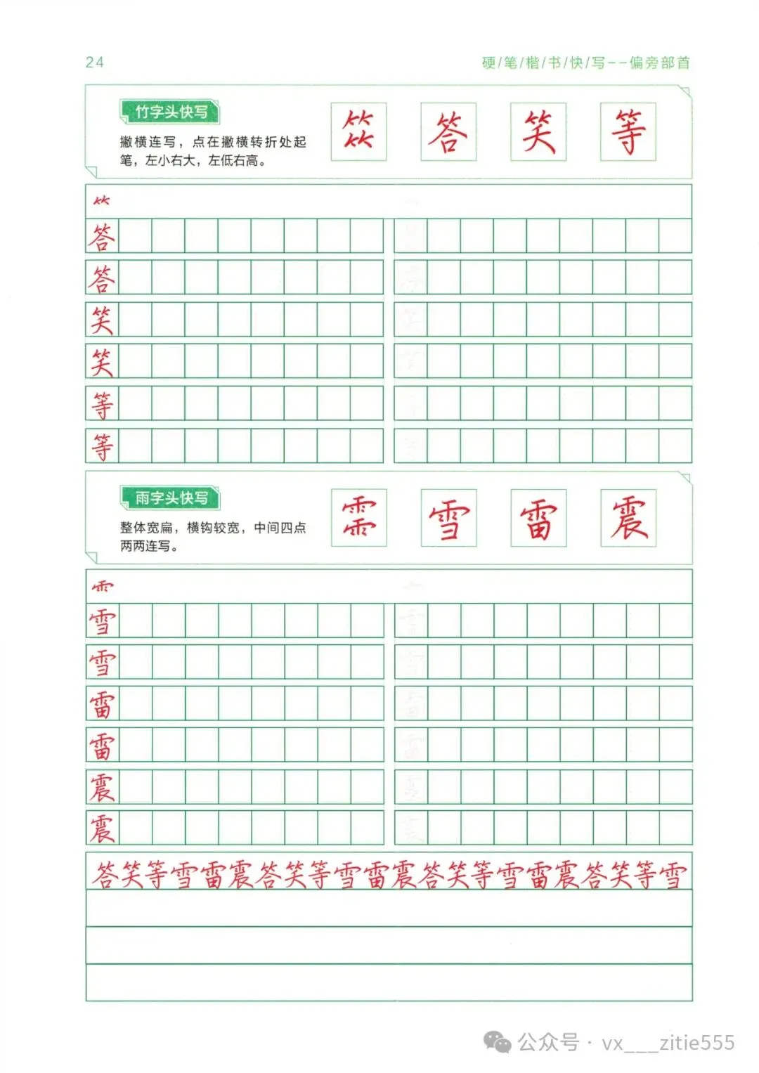 【暑假教材】《行楷字根训练》,高清PDF文件59页