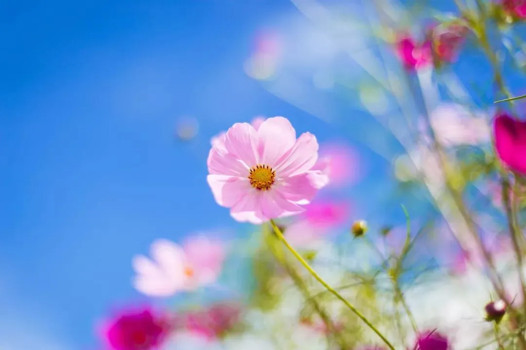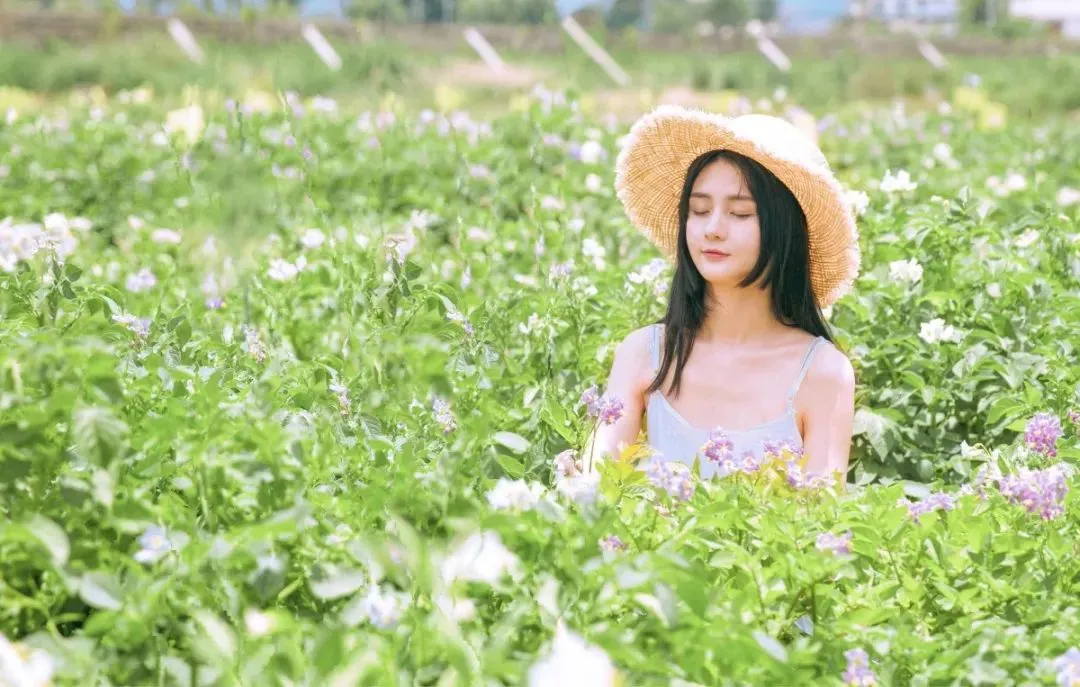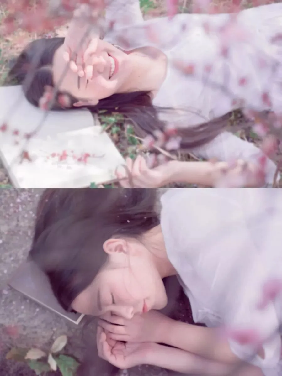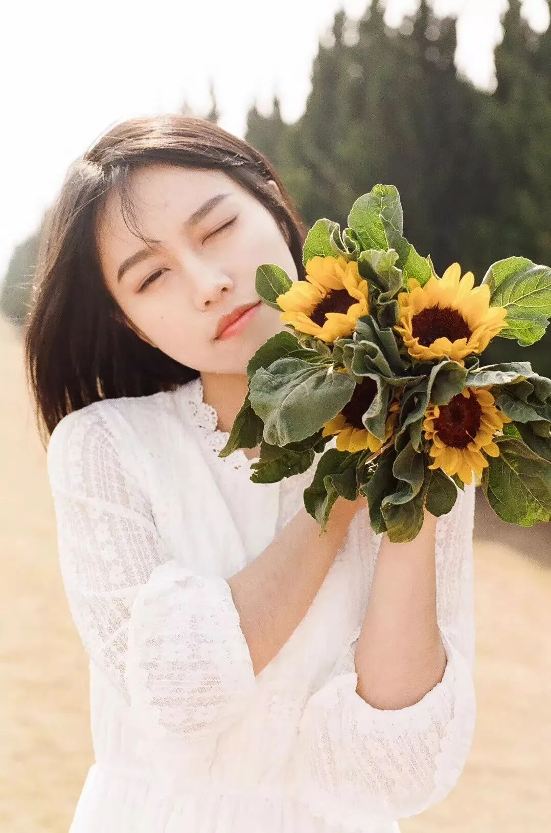 自然不做作的动作最好,想想平时看到花海,是不是很想闻一闻,摸一摸,甚至躺上去呢?
