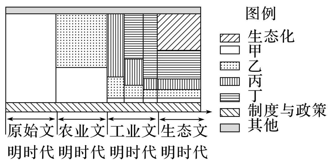下图是“人类社会不同发展阶段经济增长主导因素构成示意图”。读图回答1~3题。