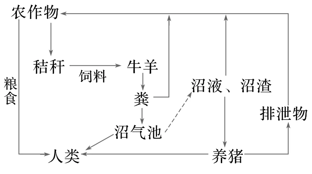 (2024·河南郑州期末)我国每年秸秆生产总量约为8亿吨,是农民生活和农业发展的宝贵资源。近年来,我国华北地区某农场不再将玉米秸秆简单粉碎后直接还田,而采用“过腹还田”的形式(下图)。据此完成9~10题。
