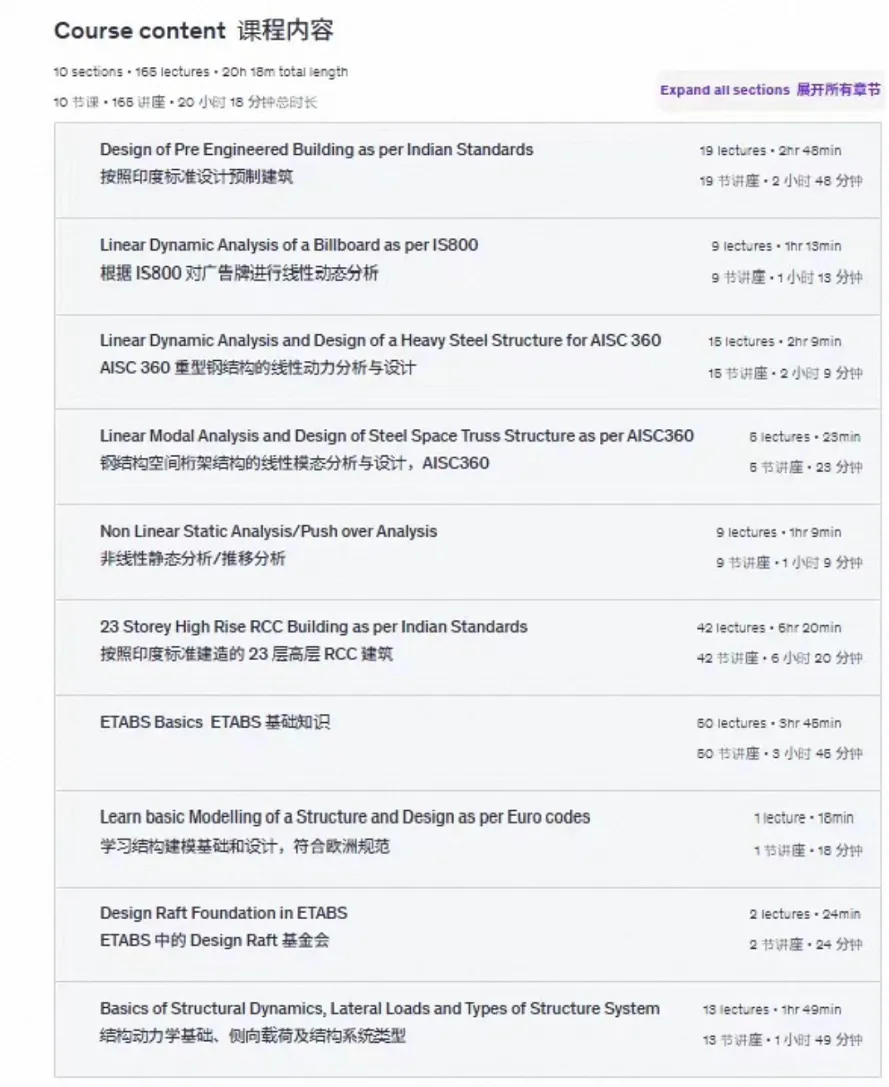 【免费下载】A623期-ETABS软件印度结构设计课程-中文字幕-10套课-155讲-共计20小时