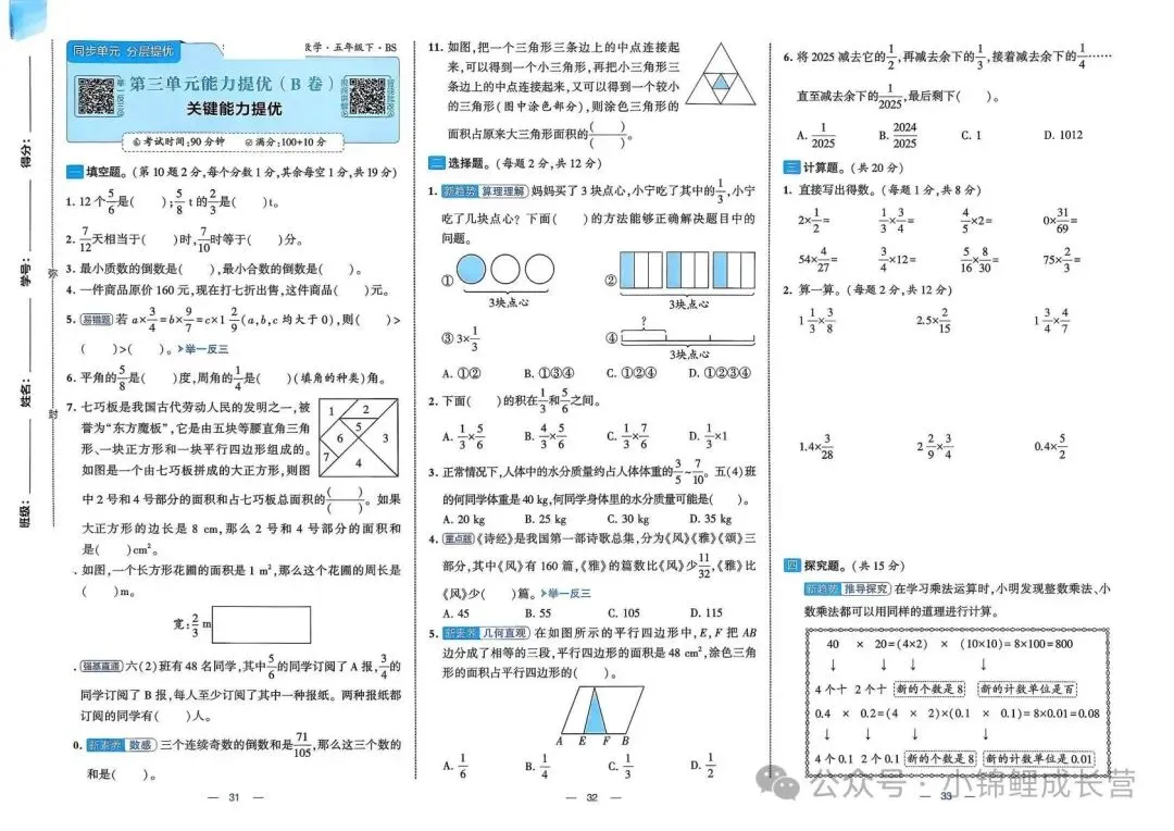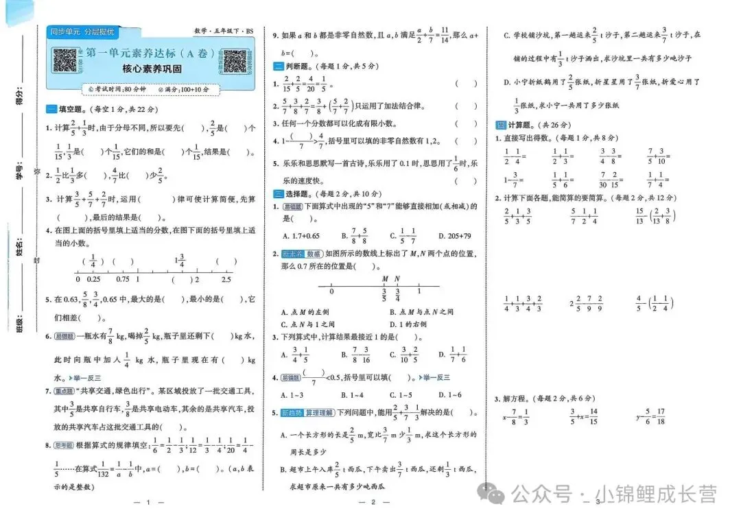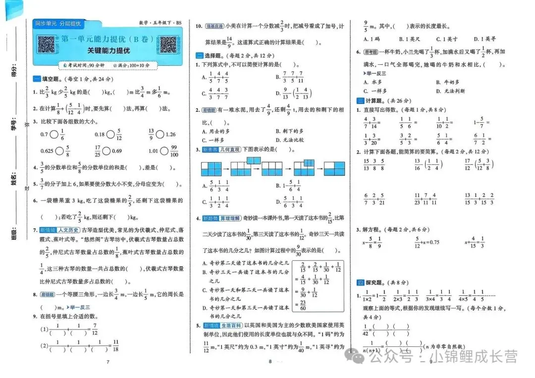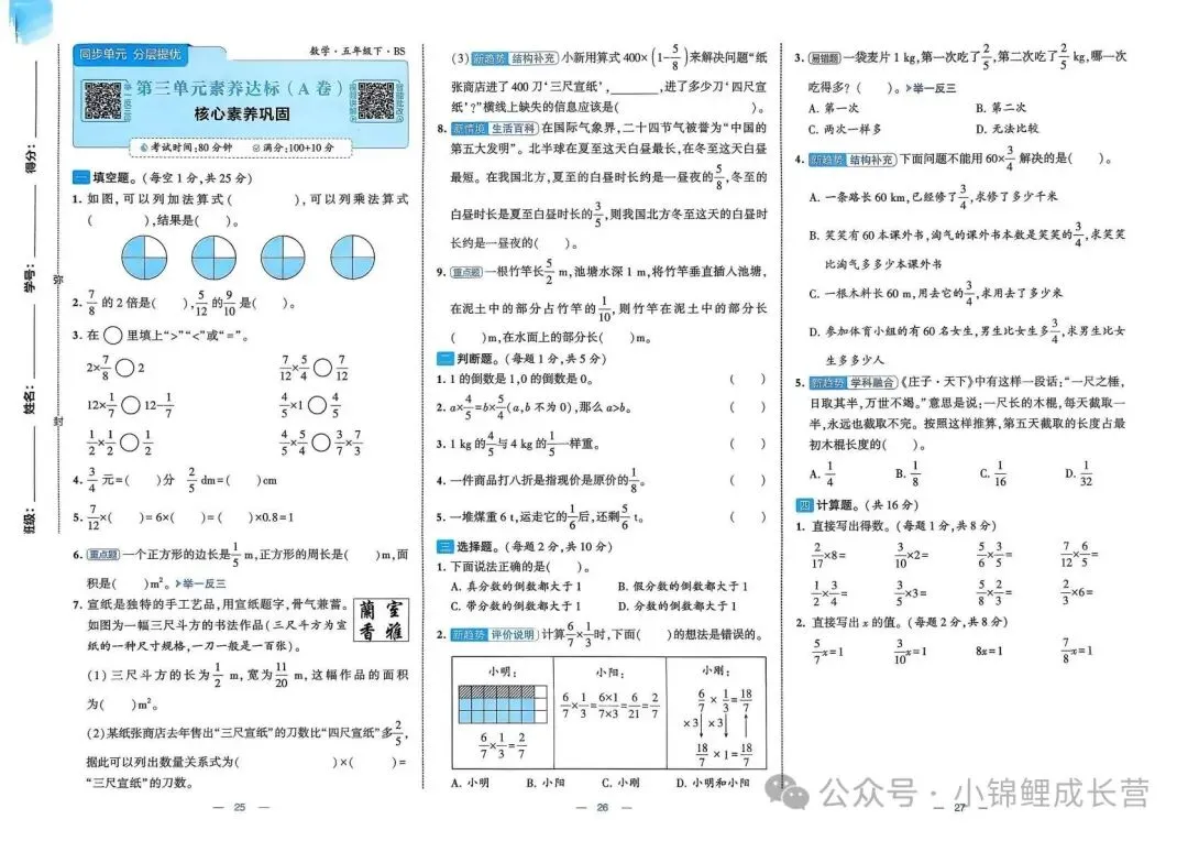 本文最后更新于2026-03-16,某些文章具有时效性,若有错误或已失效,请在下方留言或联系老夜。 2026春北师大版新五年级下册数学《1~8单元测试卷+月考期中期末+专项突破测试卷》(共30套,带答案),高清完整可打印 老师已为大家备好电子打印版,想要获取电子打印版请拉到文末查看。 获取完整的电子打印版资料 按下面方法回复 点击上方公众号↑↑关注 发送消息“资料” 即可领取全套资料 别忘了文末【点赞】和【在看】哟