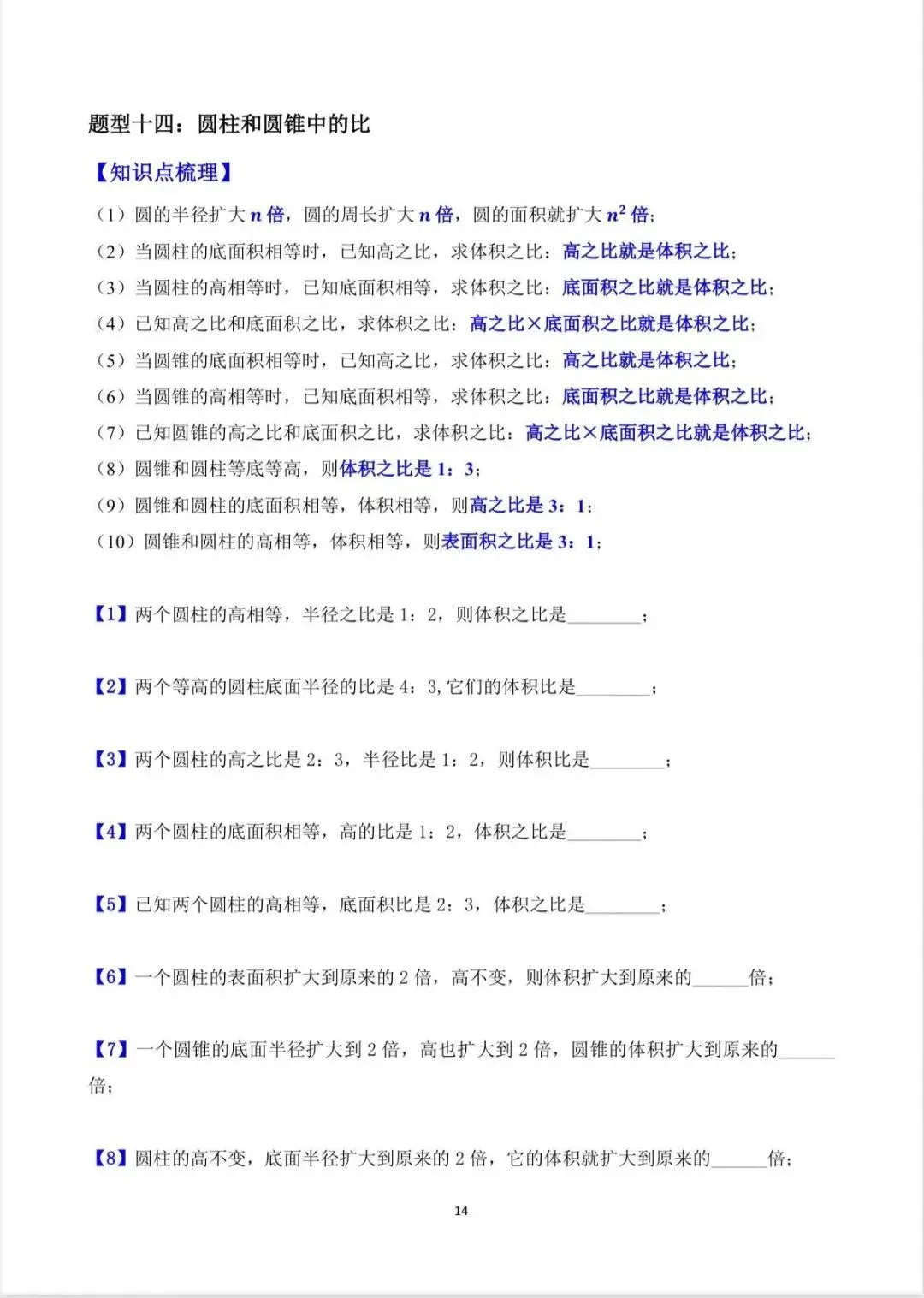 26新版(北师大版)六年级下册数学《圆柱与圆锥》知识点梳理+考点汇总+专项训练,可打印