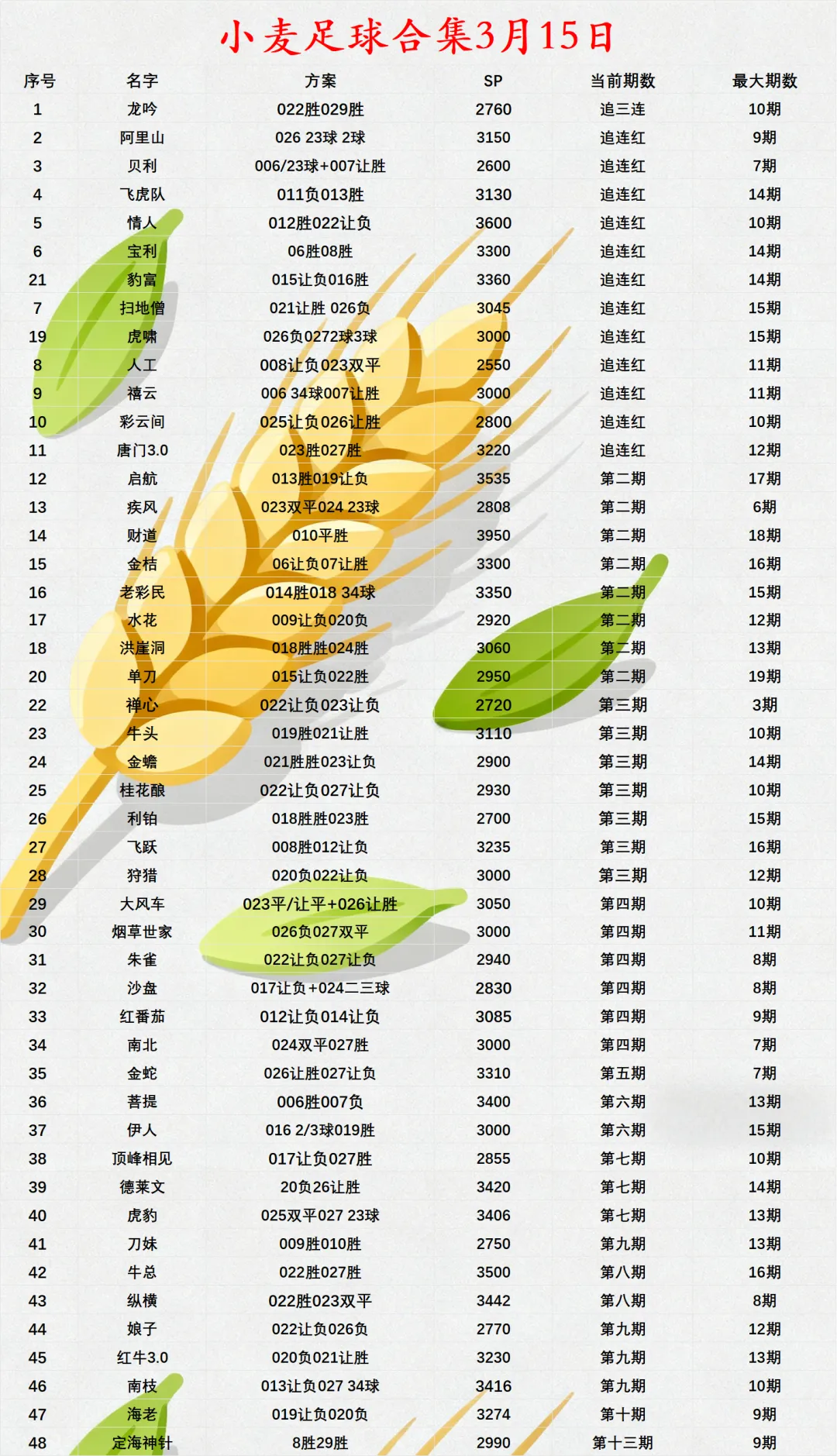 3月15日 小麦足球合集汇总