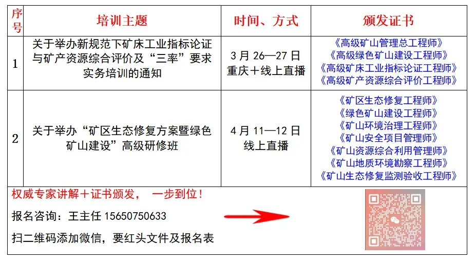 关于举办新规范下矿床工业指标论证与矿产资源综合评价及“三率”要求实务培训的通知