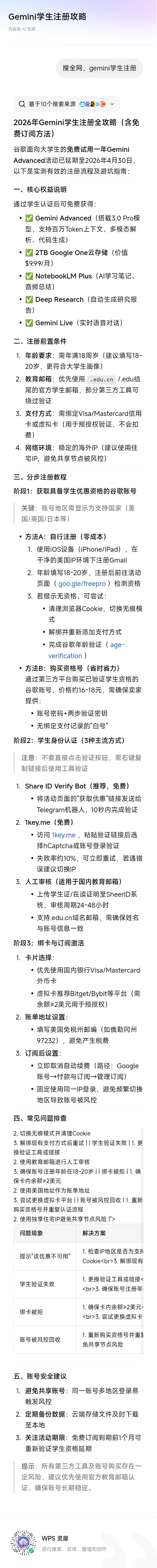 例如,大家最近问得最多的 Gemini 学生注册 为例,看看 AI 搜索是怎么带你“起飞”的。