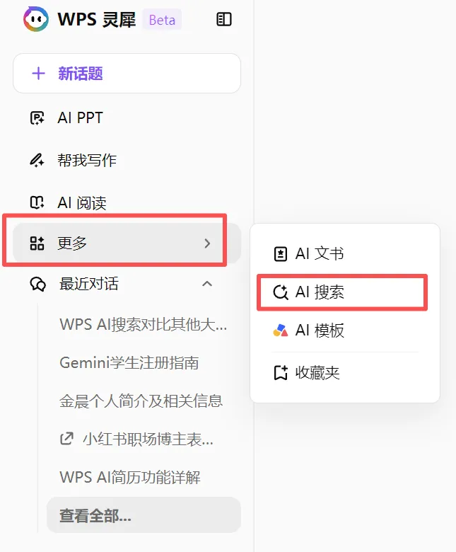再去【AI 搜索】:点击更多 → 选择【AI搜索】