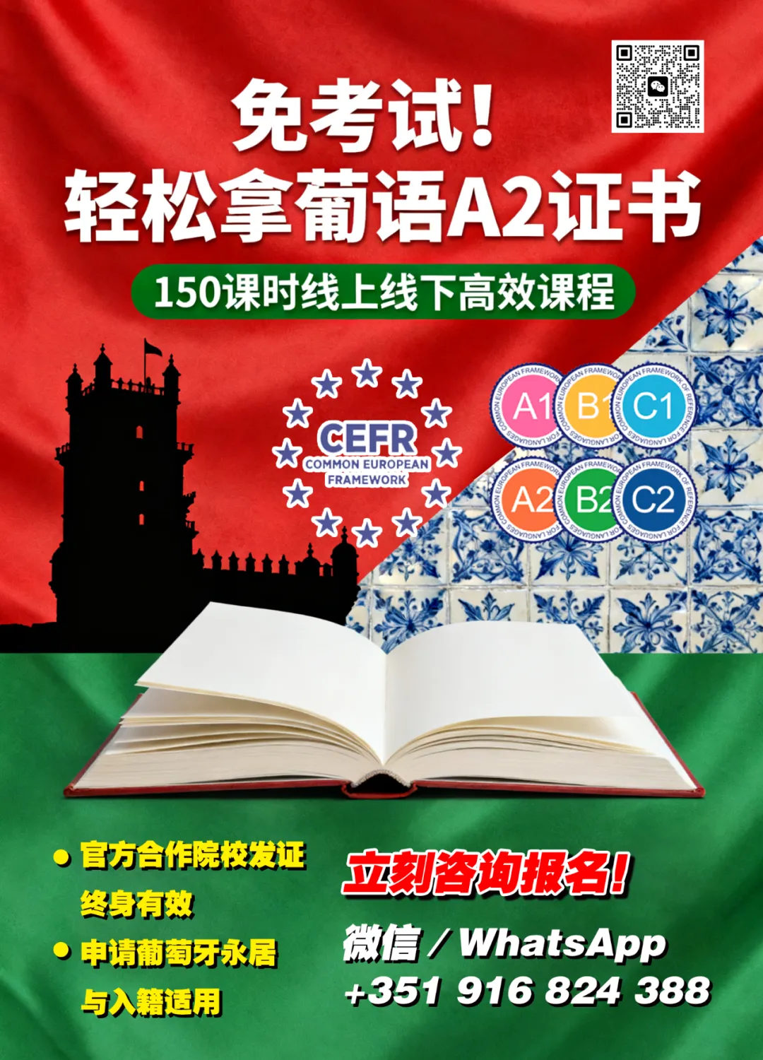 在葡生活、办永居、入国籍,葡语A2证书是绕不开的刚需。不想奔波上课、怕考试难、担心证书不被认可?CEFR 线上葡语课程+A2葡语证书,一次帮你搞定。