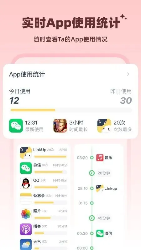 ✔️ 手机状态同步:看手机多久、解锁多少次,随时了解;