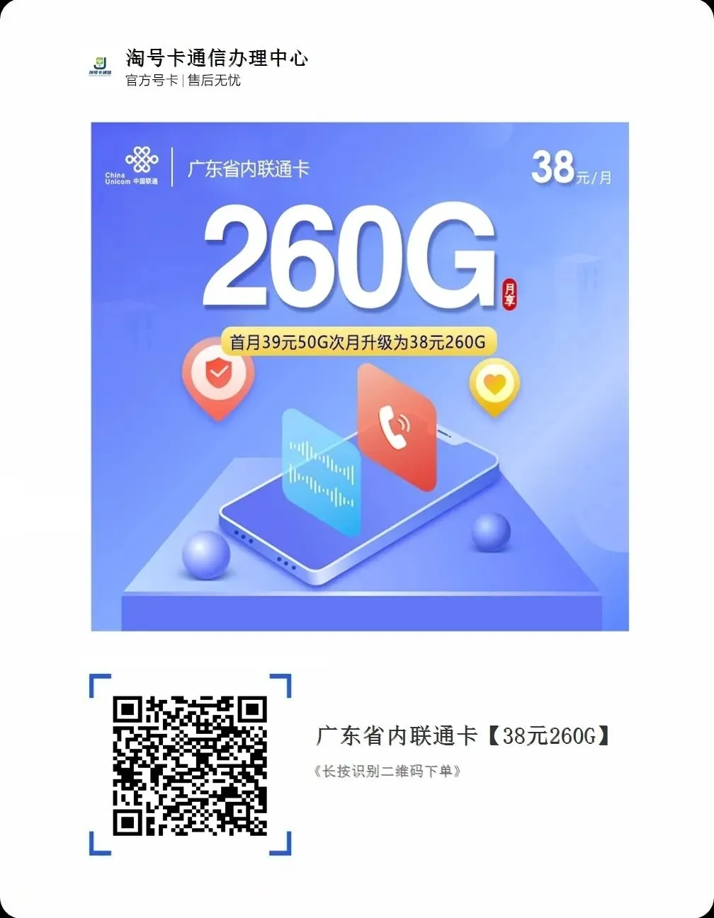 总结:联通广东省内专属卡适合长期高流量需求的省内用户,主打次月生效特惠套餐,长期套餐,260G大流量,首月免月租,快递员激活,适合学生、上班族及高频用网人群,性价比高且套餐稳定。