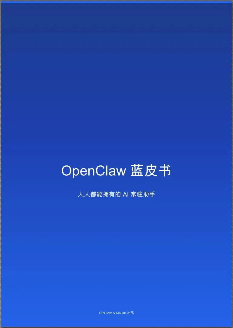 业界研究OpenClaw的组织和个人非常多,最近OPClaw和Mixlab社区就联合推出了一份即使报告《OpenClaw蓝皮书:人人都能拥有的AI常驻助手》,如下: