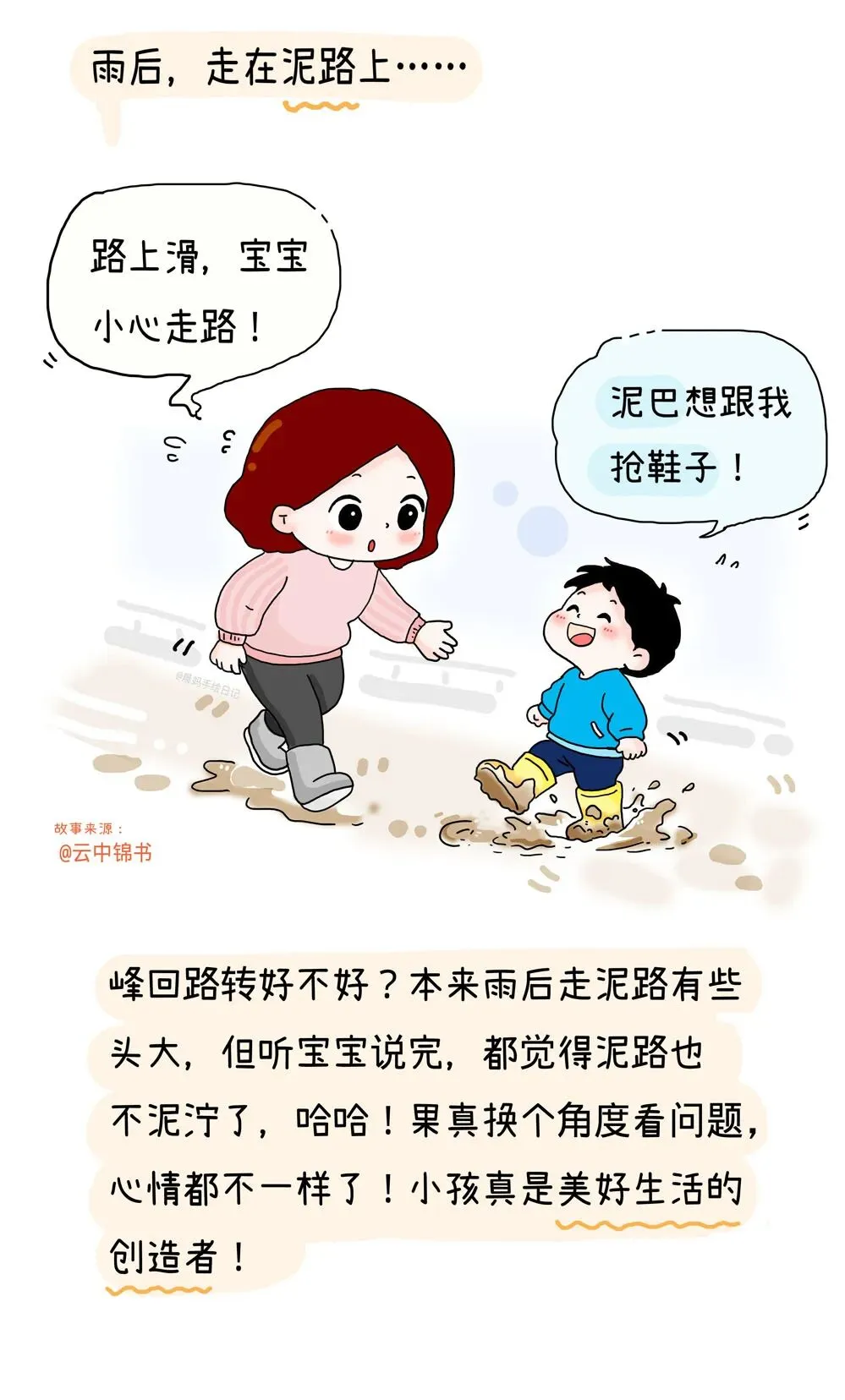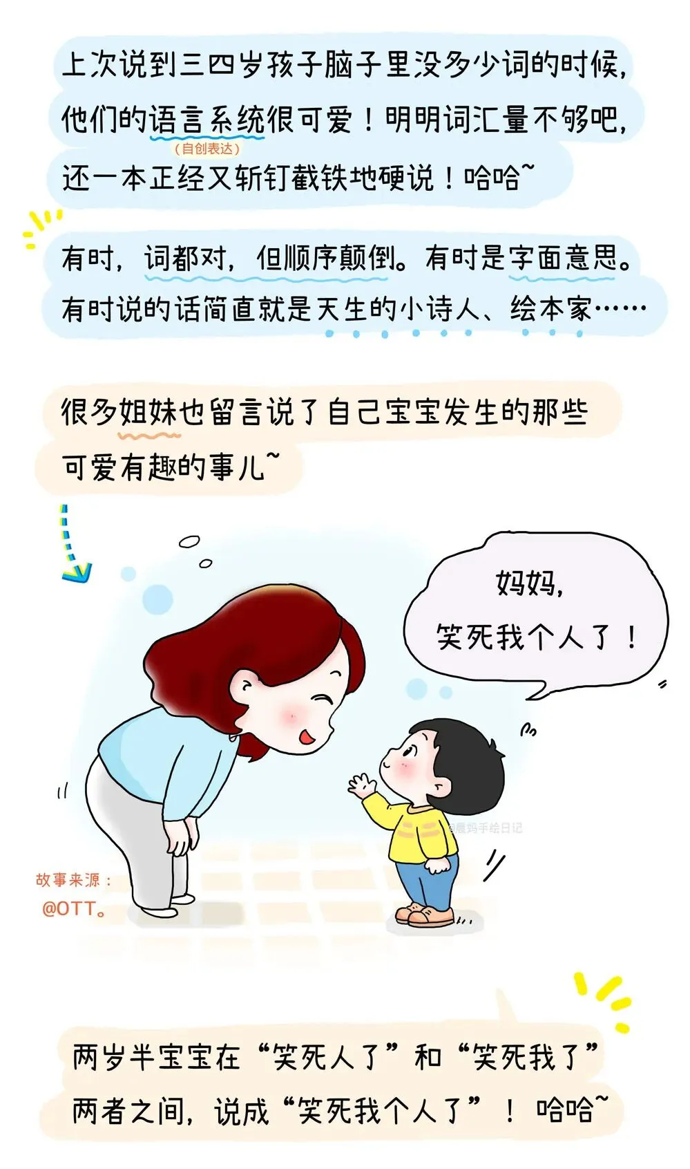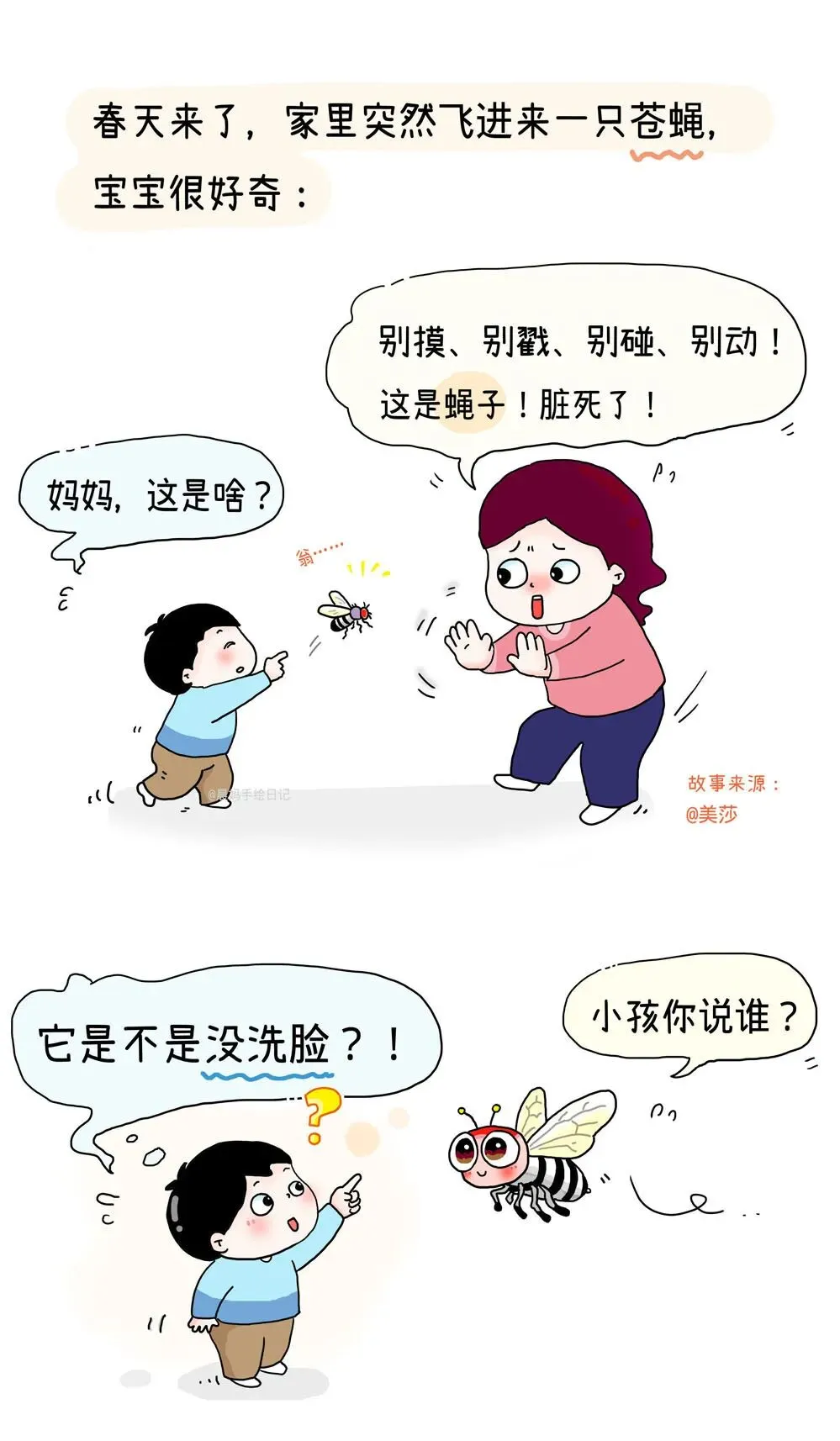 今天这篇是来自18位姐妹的留言,整理了一段时间,把宝宝们可可爱爱、又暖又甜、可笑可泪的童言,画进了同一篇漫画里。