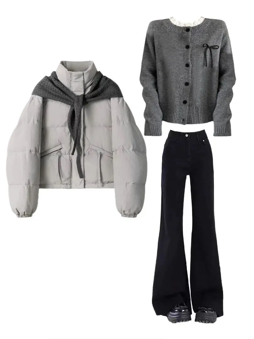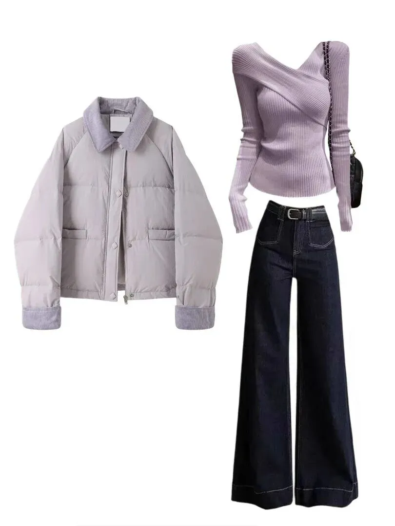 怎么有人能把短羽绒服穿得这么顺眼!真的不是我夸张,这一眼看过去,注意力就是会被这种“上短下长”的比例抓走。不是刻意显高那种,是那种悄悄把整个人身形拉长的感觉。衣长刚好卡在腰线最细的地方,下面配一条垂坠感好的裤子或者半裙,腿线一下就干净了,整个人看起来也舒展了起来。