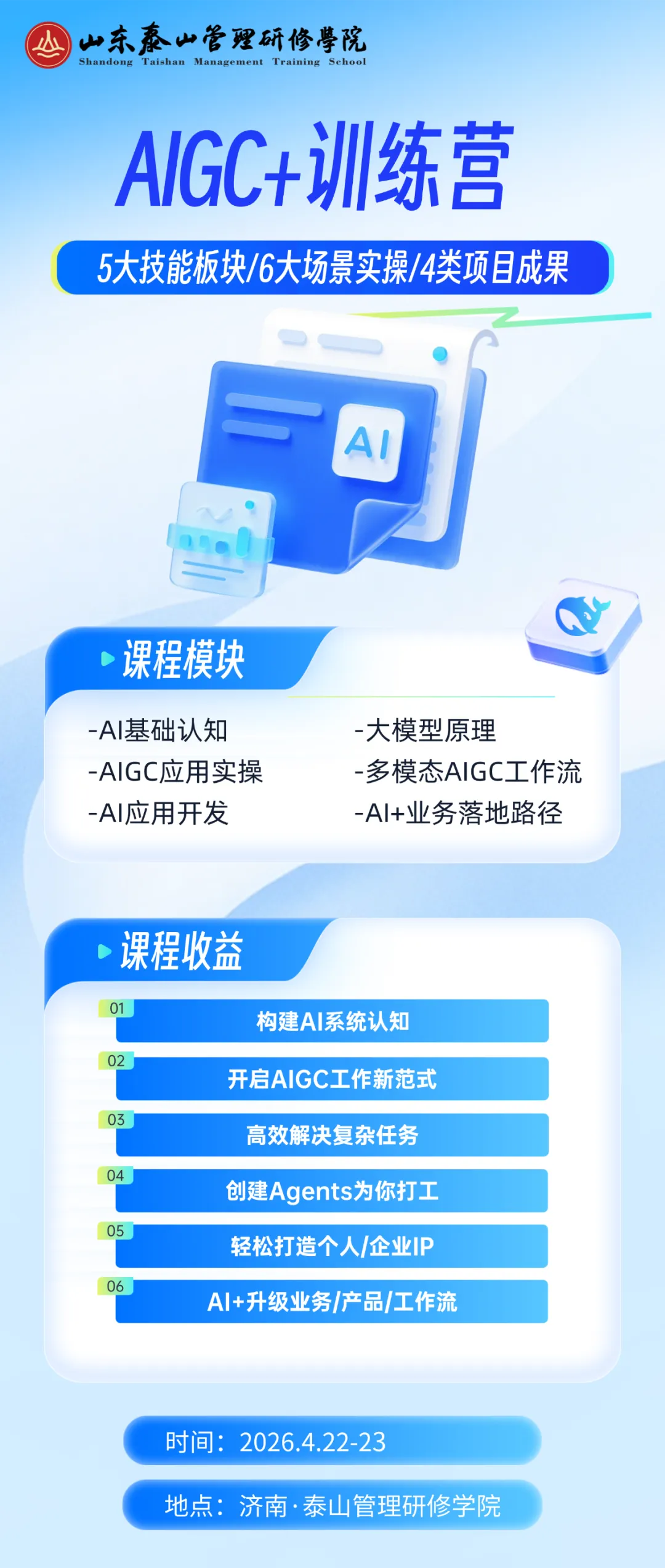 泰山管理学院推出的「AIGC +训练营」正是为了帮助企业管理者与核心骨干跨越从“拥有工具”到“实现效能革命”的鸿沟。