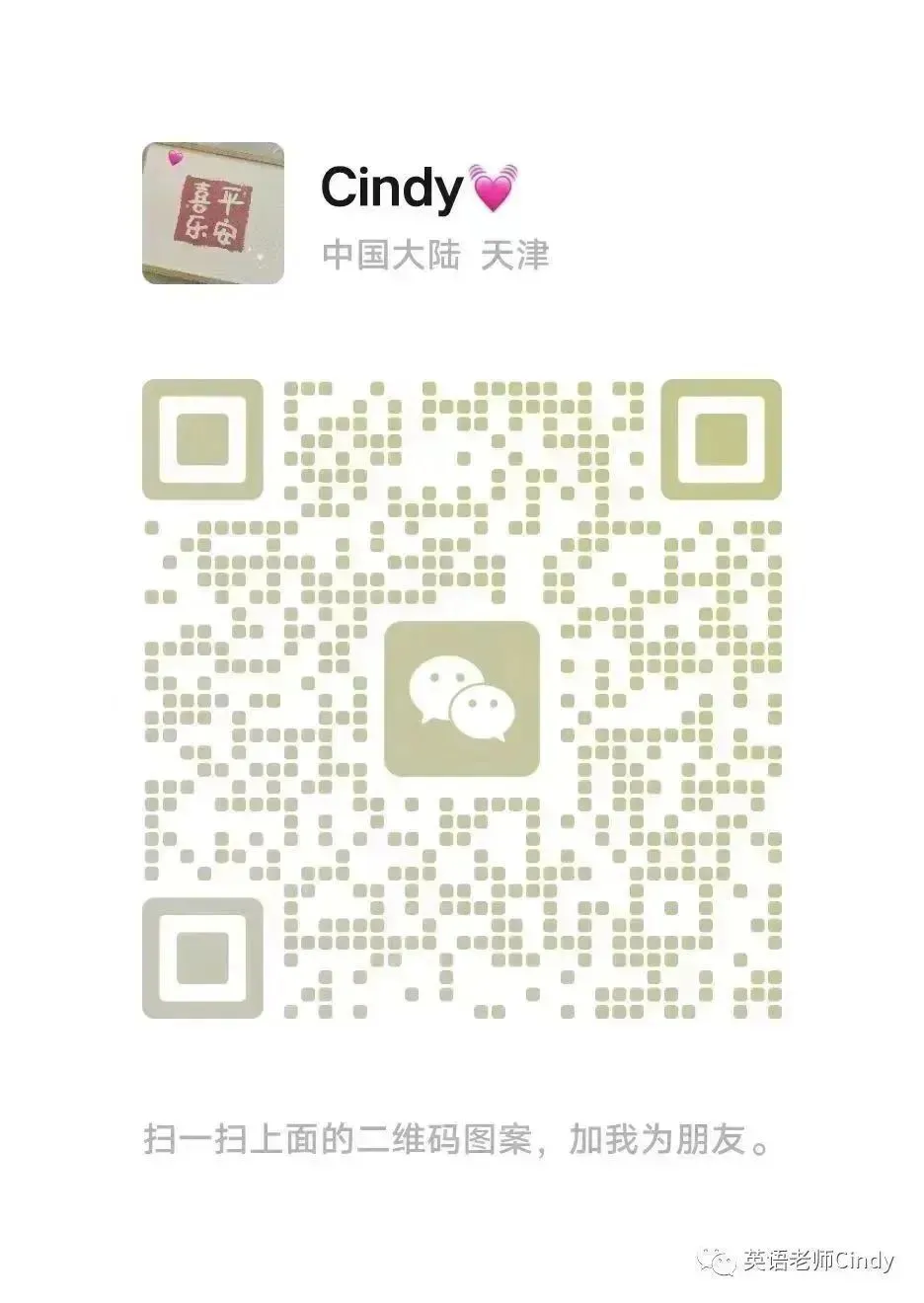 Hi~大家好,很高兴在这个公众号和大家相遇。我是Cindy,一名英语教师。我会在工作之余努力保持每天更新英语学习资源,感谢大家的支持,爱你们哟~比心💕