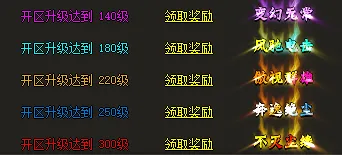 升级奖励:人物140-180-220-250-300级可领取对应的称号