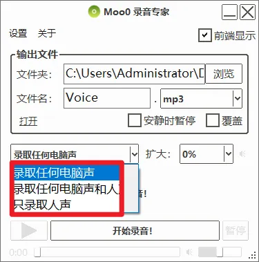 比如录音专家,点击即可打开,支持录取任何电脑声音、录取任何电脑声和人声、只录取人声。