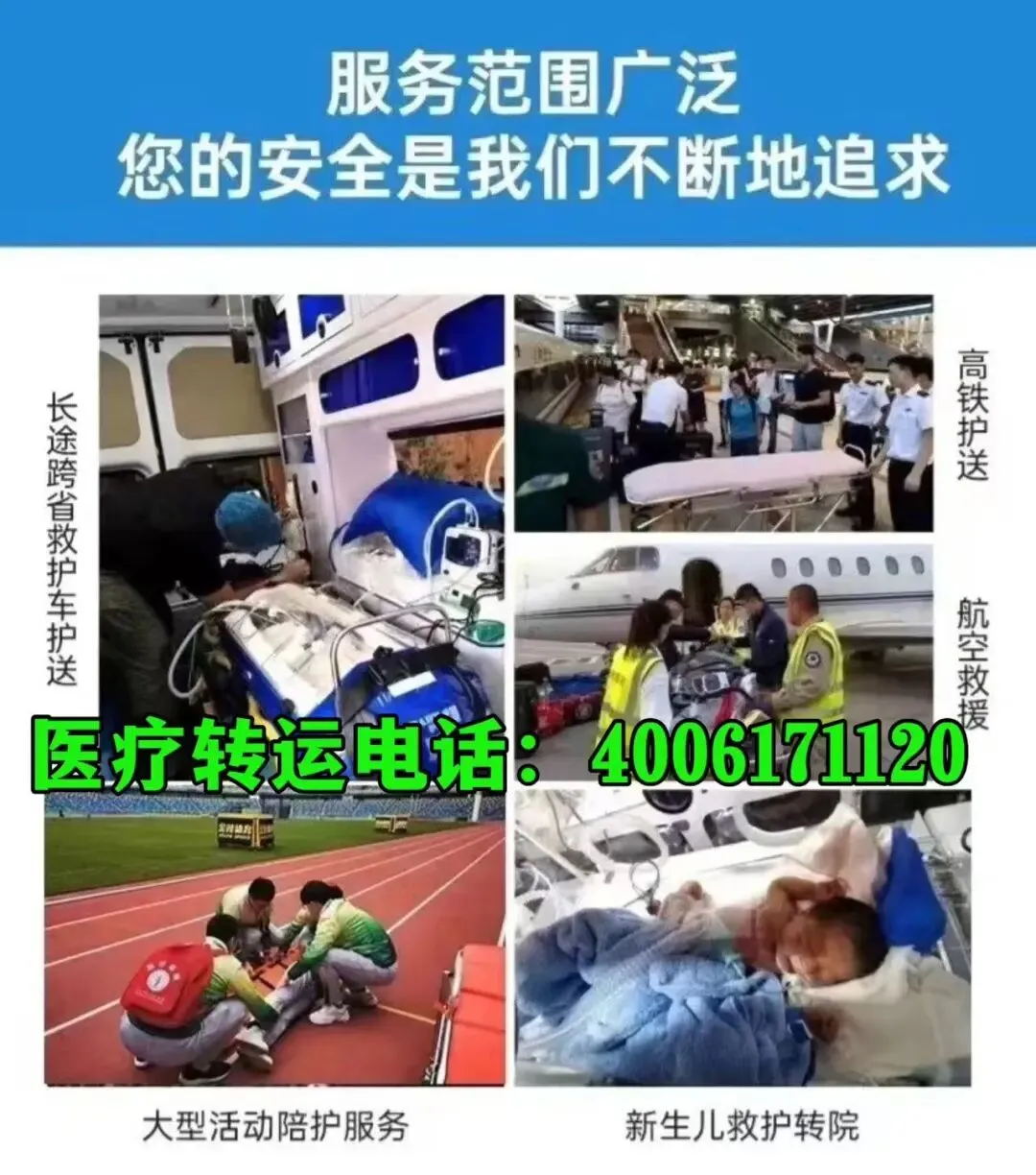 120非急救车辆 我公司承接高铁转运病人航空转运病人 救护车转运’长途跨省转运病人新生儿、骨折、重症、危重症患者,行动不便者复查,转院、转诊、跨省回家,我们都能专业承接。专业救护车配备先进设备,随车医护经验丰富,全程守护生命安全。无论何时何地,只要您有需求,拨打 4006171120 即可预约。我们费用透明合理,详细费用等您咨询,为您提供安心、可靠的转运服务。