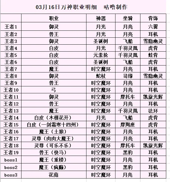 【冒险大作战】3月16日app万神职业明细