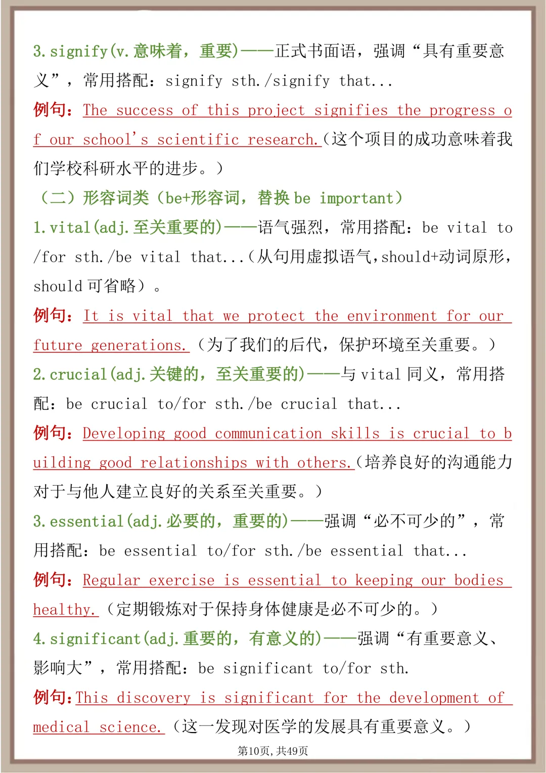 高考必背【封神级高中英语写作高级替换】,可打印 快收藏