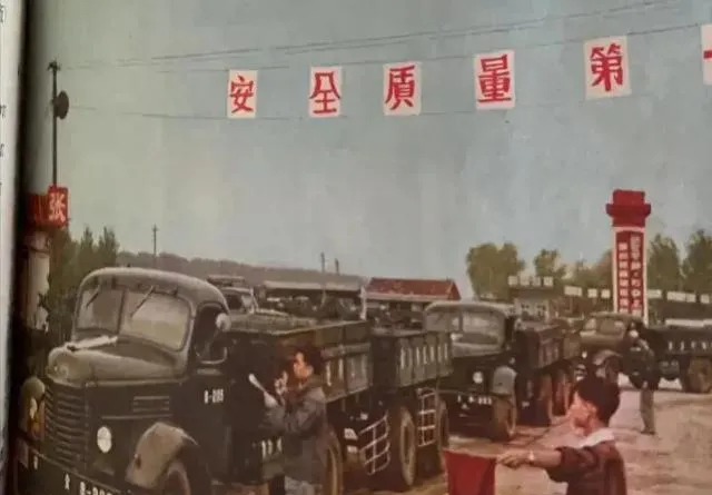 另一张图里排成一列的车全是解放CA15,跟CA10是一家子的,个头更壮,外形还是老派,讲究的其实是那份敦厚,司机都说,挂挡不用离合要凭手感,机灵劲全在脚腕子上,春夏秋冬,哪怕是大队聚粮食、拖砖窑拉焦碳,全靠它硬扛,天黑路滑,只有解放CA15的灯柱还黏地面,顶着“第一质量安全”旗的车队路过,孩子们都要驻足看看这铁皮进站。