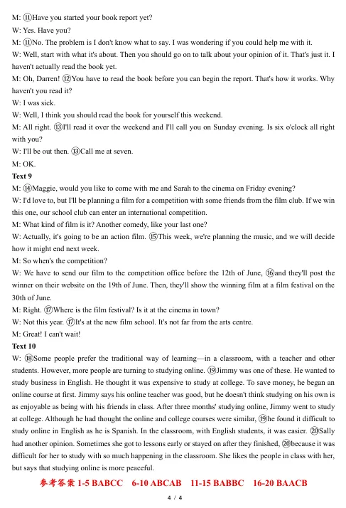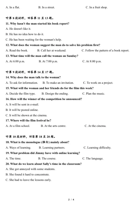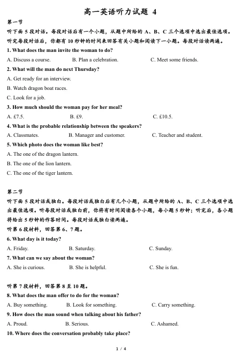 高一英语听力模拟训练 第4套<文末附电子版免费下载链接+听力音频>