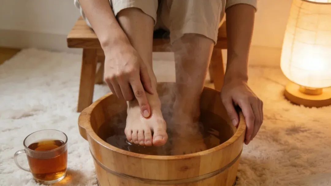按一按脚心涌泉穴,睡得香、腿脚暖。