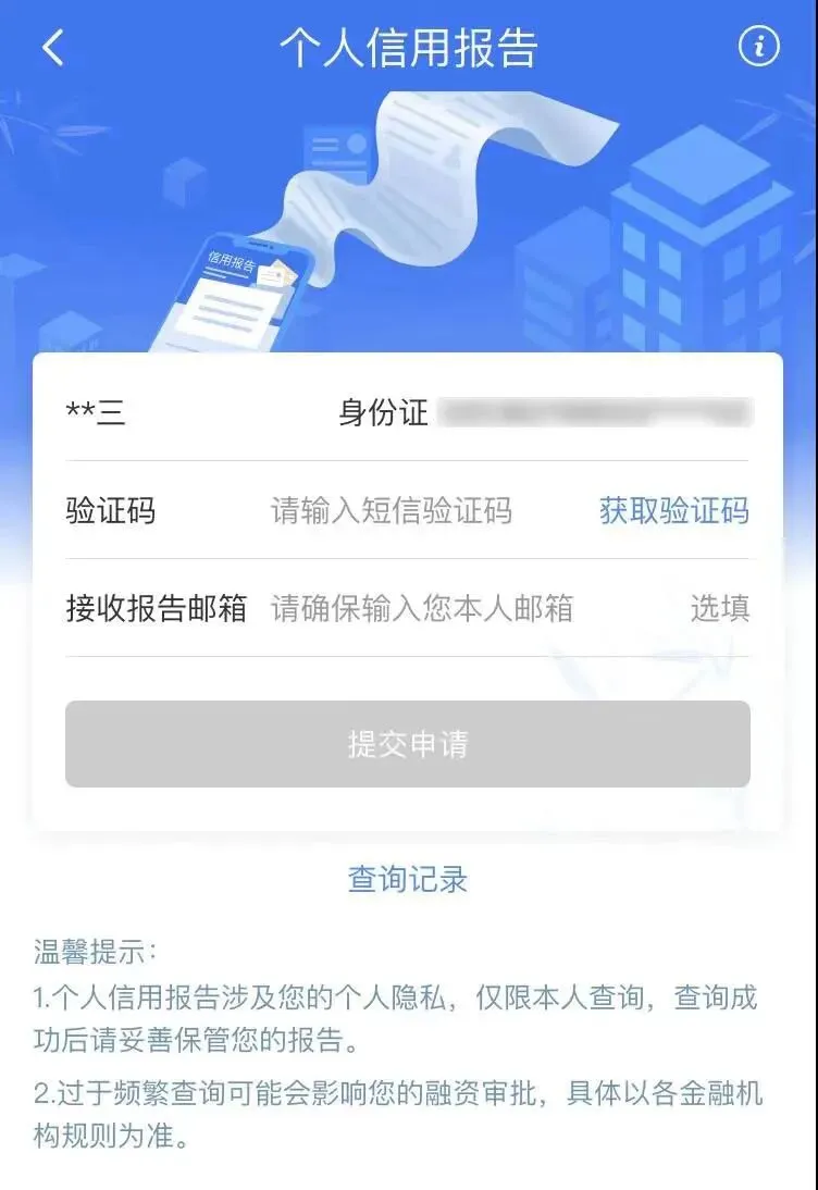 【民生银行】手机app个人征信,如何在线查询? 建议收藏 1、登录民生银行手机银行,点击首页“ 全部 ” 2、在生活服务中,找到 “ 征信查询 ” 3、输入个人信息,点击获取验证码。 4、进行人脸识别。 5、同意并知晓。 6、等待报告生成。 7,点击查看报告。 分割线 真正的价值,在于当你遇到难题时,我能刚好拿出那个“最优解”。 不想错过每一个与高手同行的机会,如果你也对金融、融资感兴趣,欢迎扫码/搜索添加我的微信,我们慢慢聊。