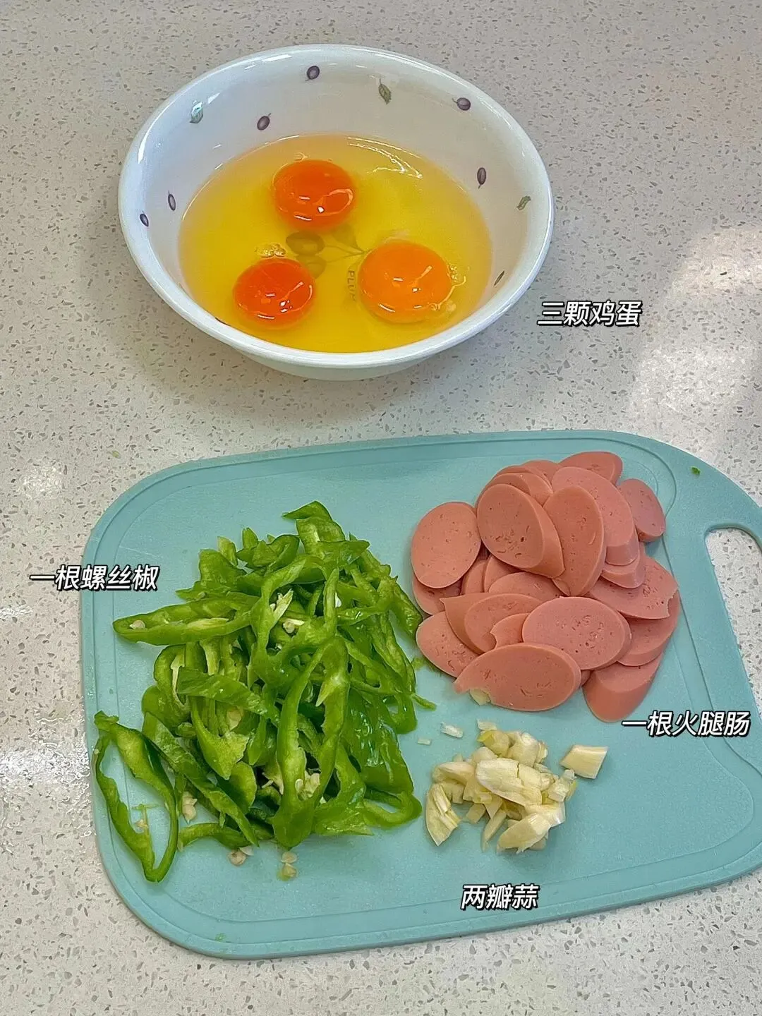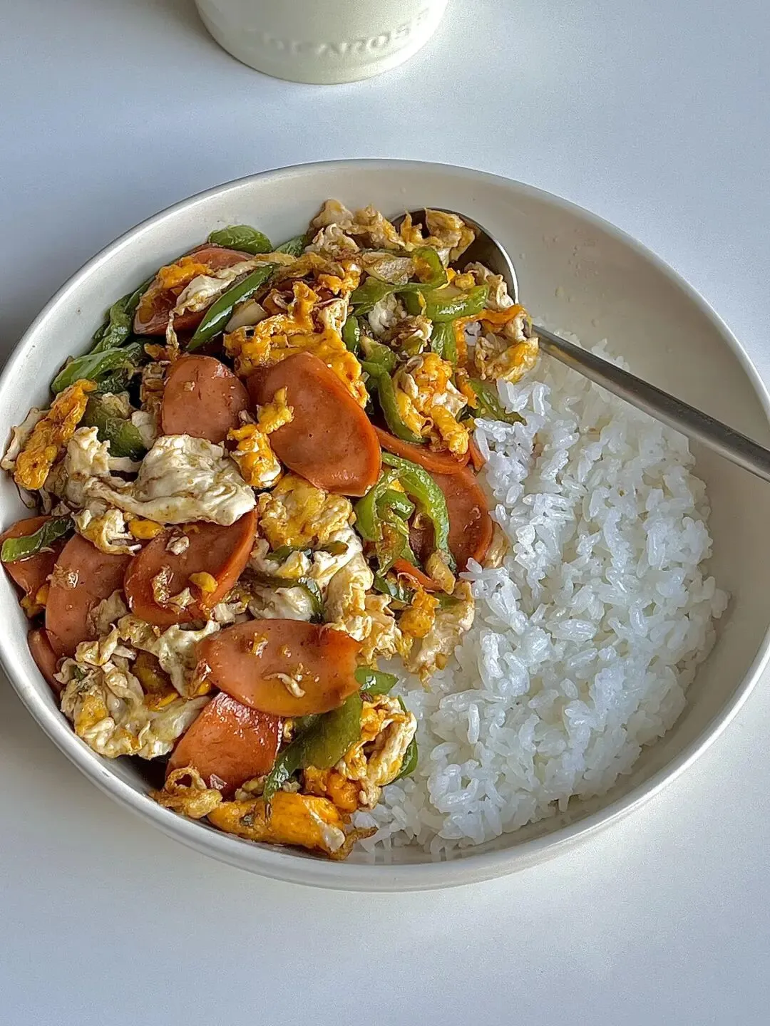 鸡蛋辣椒火腿肠盖饭