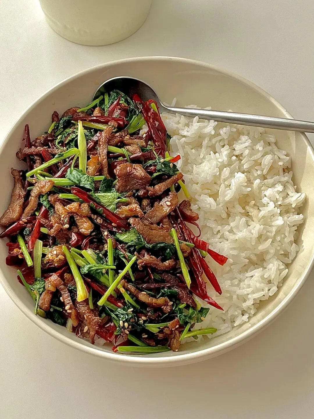香辣肉丝盖饭