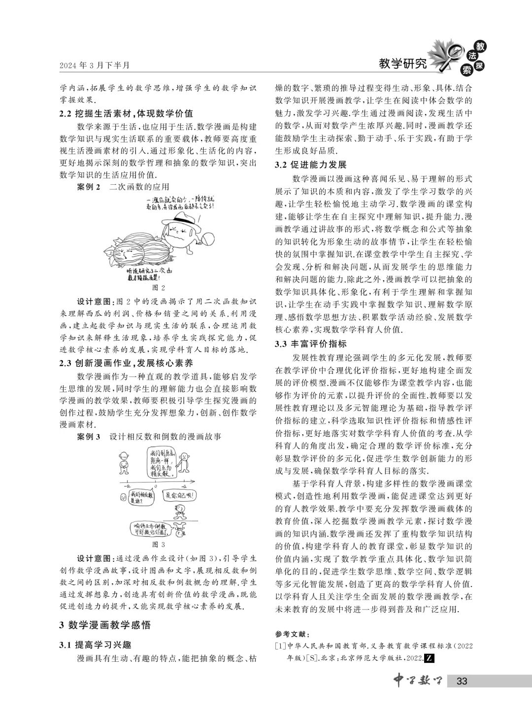 学科育人背景下漫画融合初中数学教学的实践探索