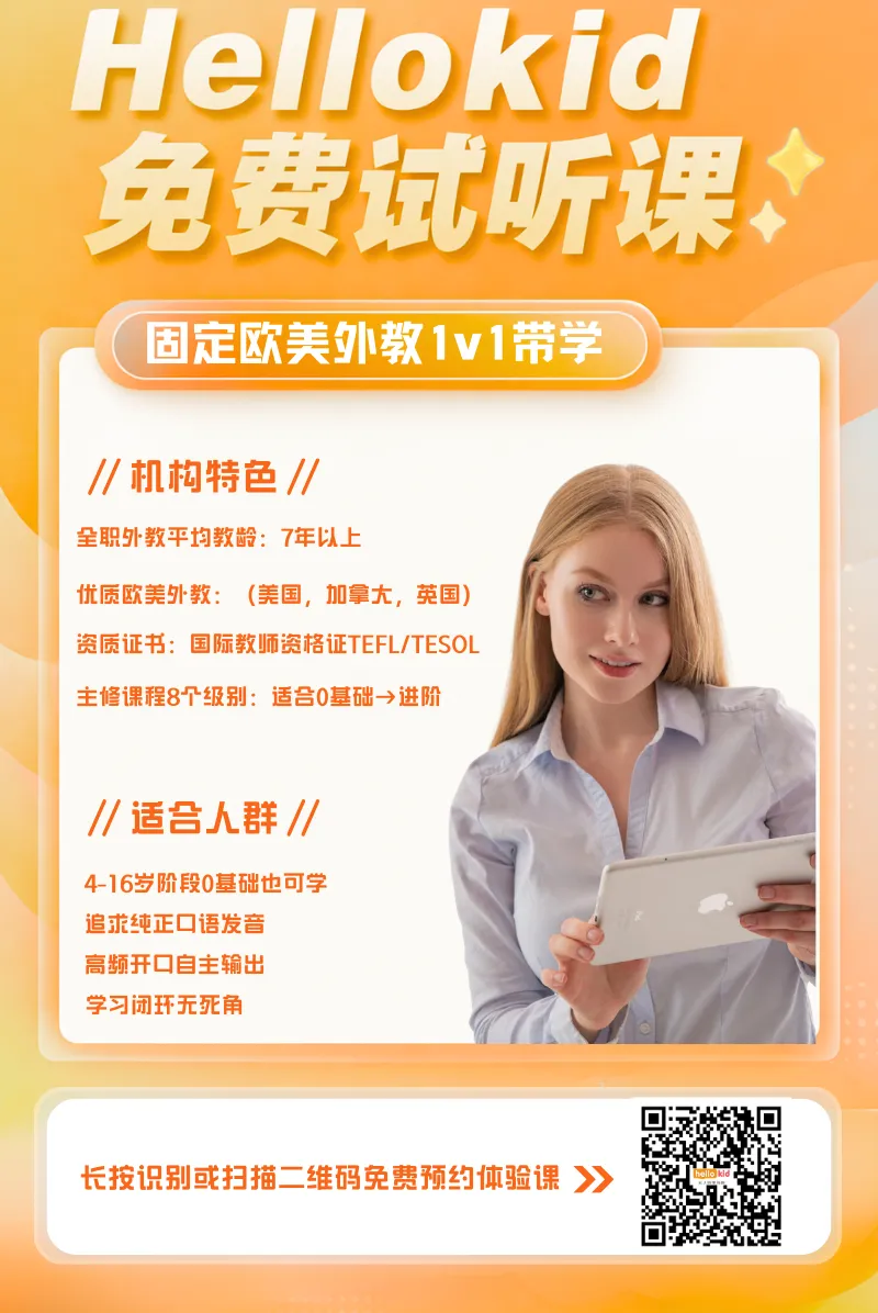 ✔ 欧美外教发音特别准,语速适中✔ 能快速“调动”孩子情绪,课堂不尴尬✔ 会根据孩子水平做即时调整✔ 课后反馈详细,家长一看就明白孩子哪里薄弱