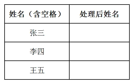 结果显示:「 张三」变为「张三」,「李四 」变为「李四」,「 王五 」变为「王五」。